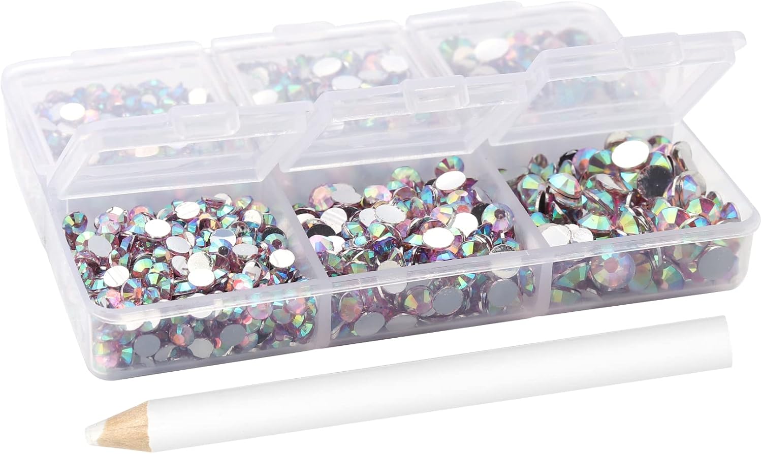 - 3 Sizes Rhinestones Set with Pick Up Pen: 2050 pcs per box. Round flat backs &Non Hotfix, SS10 (3mm) 1100PCS, SS16 (4mm) 600PCS / SS20(5mm) 350PCS.
