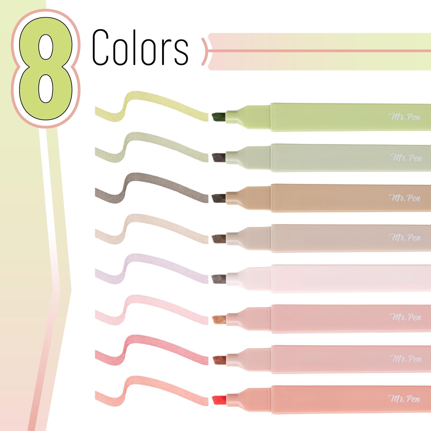 Mr. Pen- Aesthetic Highlighters, 8 pcs, Chisel Tip, Boho Colors, No Bleed Bible Highlighter Pastel, Assorted Colors, Cute, Back to School Supplies
