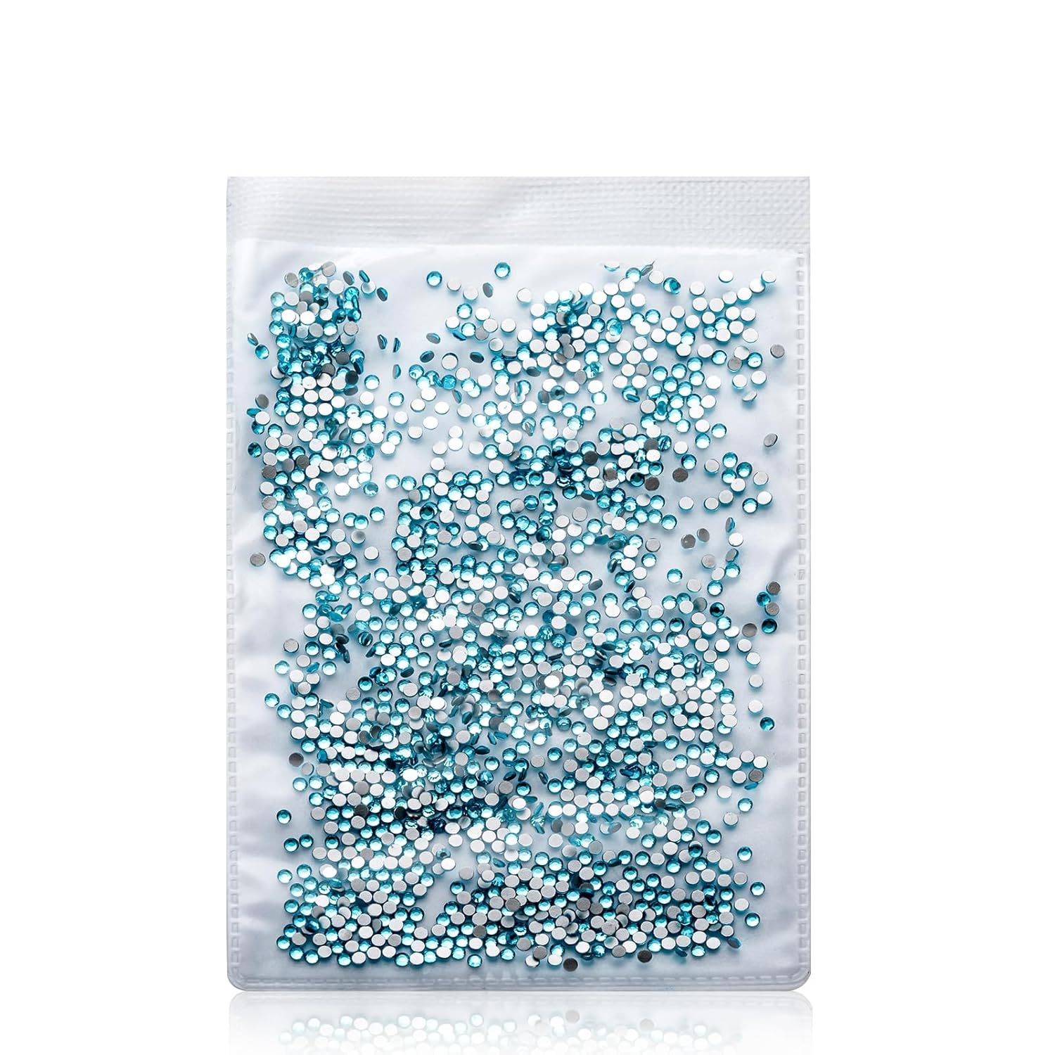 3000Pcs Aquamarine Crystal Rhinestones,Glass Flatback Rhinestones Mini Gemstones for Nail Face Makeup Art Crafts Clothes Decoration -(SS8,2.4mm,Aquamarine)