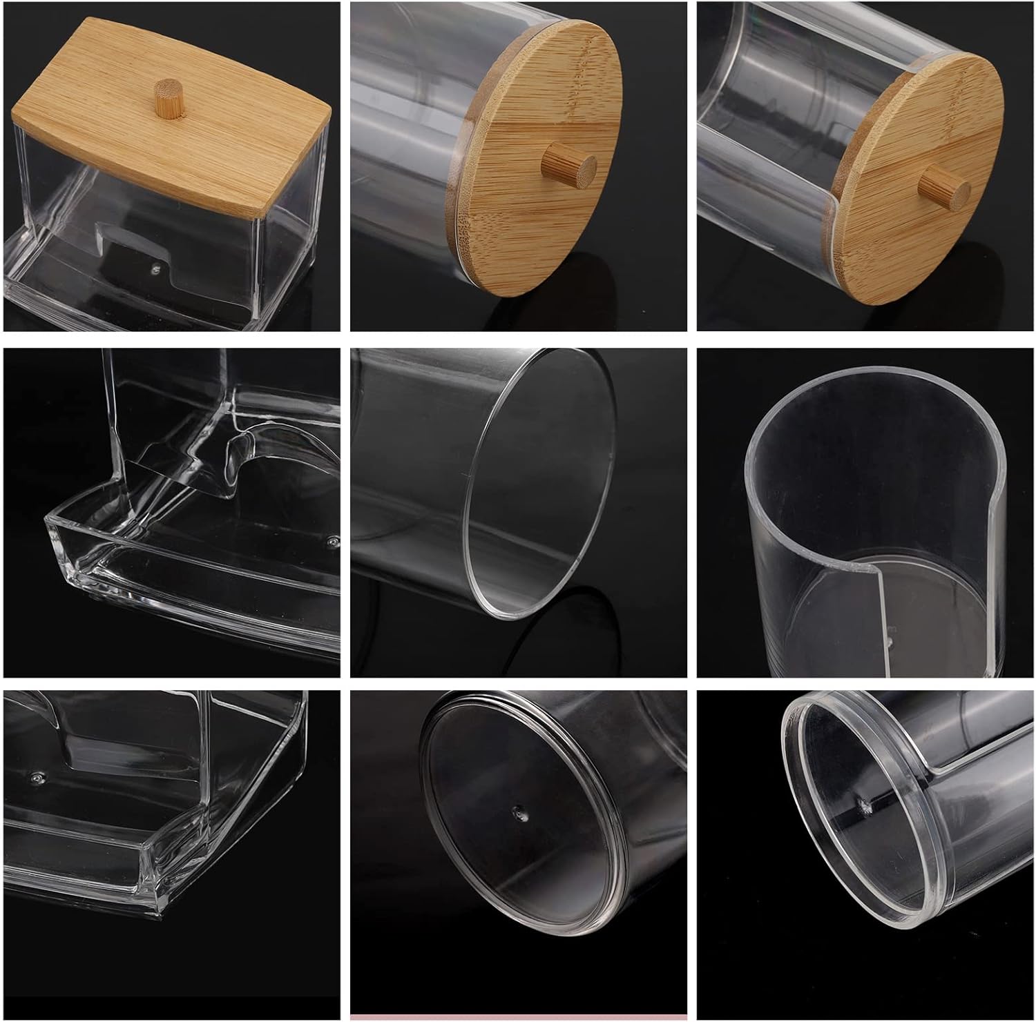 Tbestmax Bathroom Organizer Accessories Set-10 OZ,7 OZ Qtips Holder Storage with Brown Wood Lids, Cotton Ball/Swabs Dispenser, Apothecary Container Jar 3 Pcs