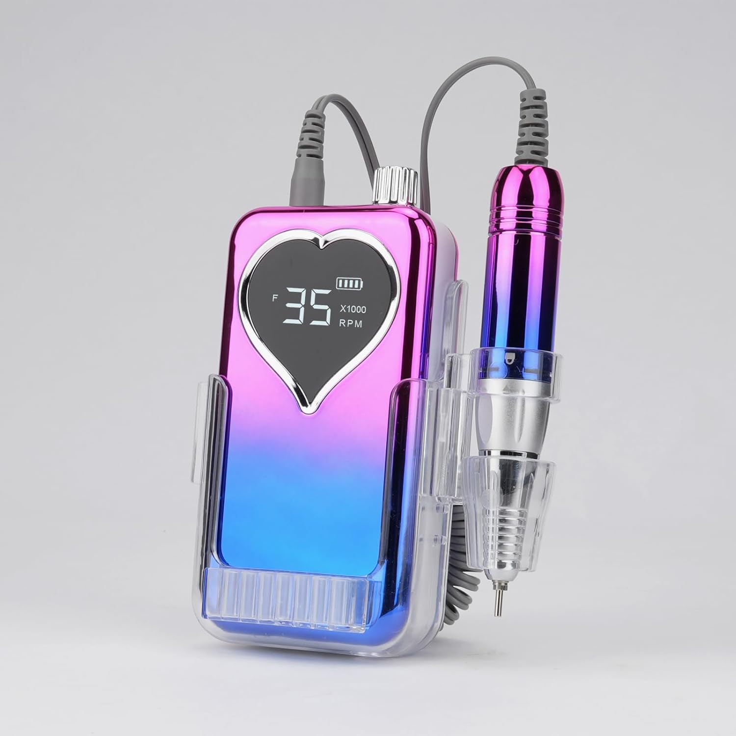 Professional Electric Nail Drill Machine for Acrylic Nails, 35000 RPM Electric Nail File Tool Set, Portable E-File Rechargeable Manicure Pedicure Polish Kit for Home Salon Tech (Heart Sunset Blue)