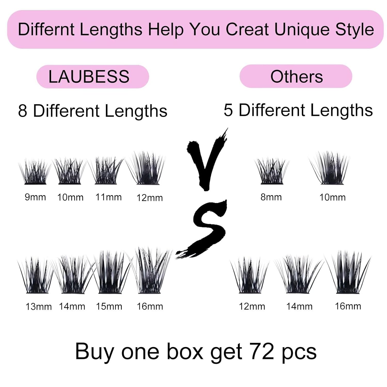 Lash Clusters 72pcs Individual Lashes Wispy Cluster Lashes Reusable Eyelash Clusters DIY Eyelash Extension Soft Individual Lash Extension Supplies (01-0.07D, 16mm)