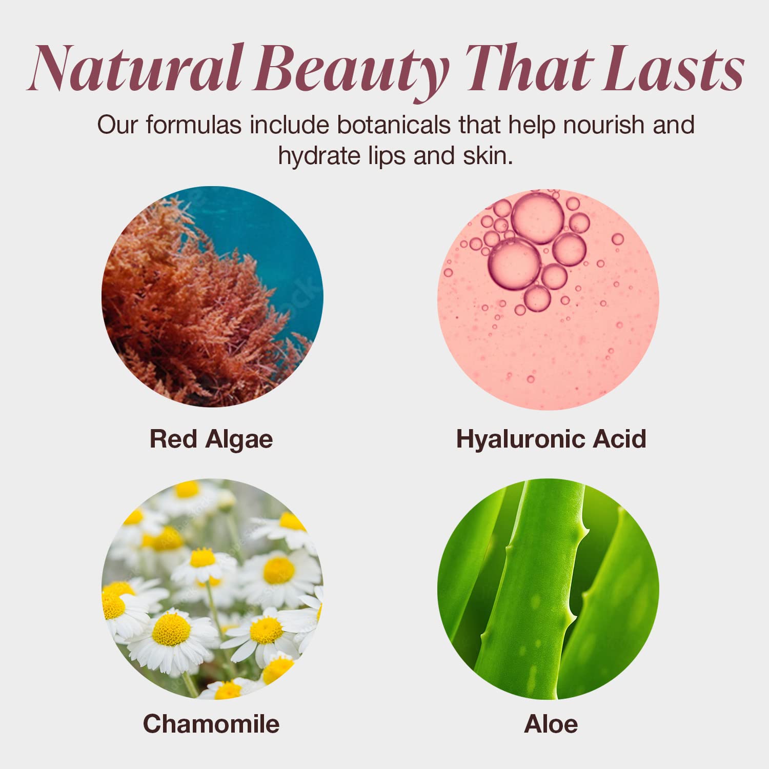 - NOURISHING BOTANICALS: Enriched with hyaluronic acid, aloe,, chamomile, red algae to help nourish and hydrate lips and skin. 98% naturally derived formula.