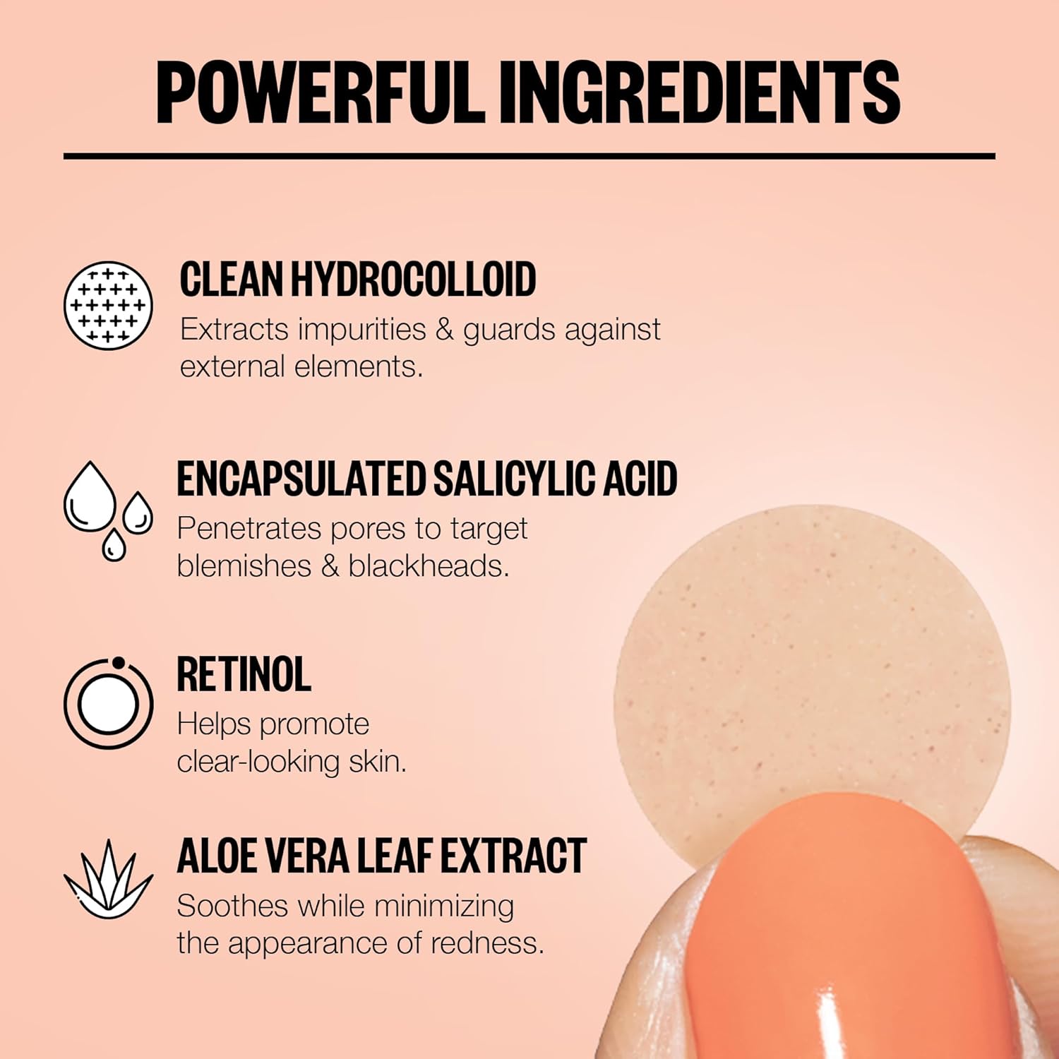 - PATENTED CLEAN TECHNOLOGY: Medical-grade hydrocolloid infused with salicylic acid, retinol, and aloe vera pulls impurities from the pimple into the dot while soothing and healing the skin