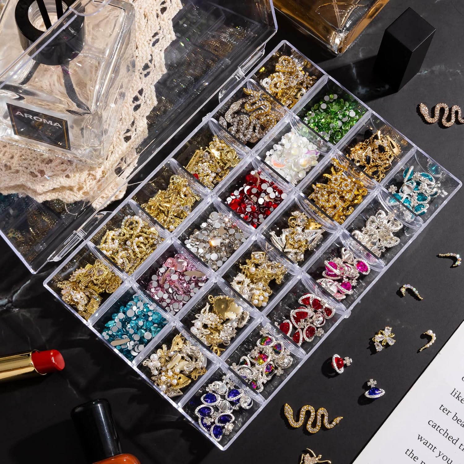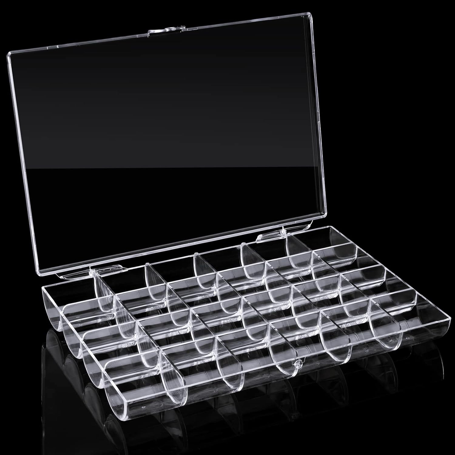 - 【Small Body & Large Capacity】-- This clear organizer measures 7 x 4.76 inches. Designed with 24 individual compartments for storing small parts or supplies, keep them away from mess up. Unique transparent appearance creates attractive display, which every female will fall in love with at first glance