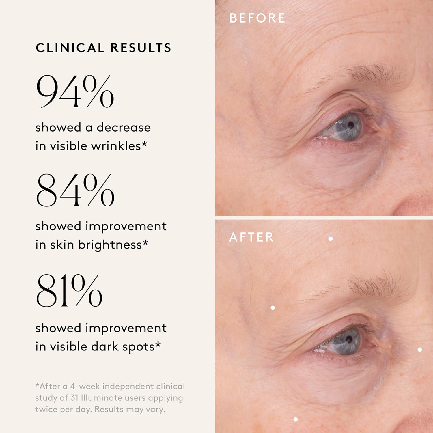 - FOR ENHANCED RESULTS - Pair Illuminate serum with your favorite Naked and Thriving Eye Cream, Face Cream, Face Oil, or all three, to help lock-in hydration for a dewy, supple look. *After a 4-week independent clinical study of 31 Illuminate users applying twice per day. Results may vary.