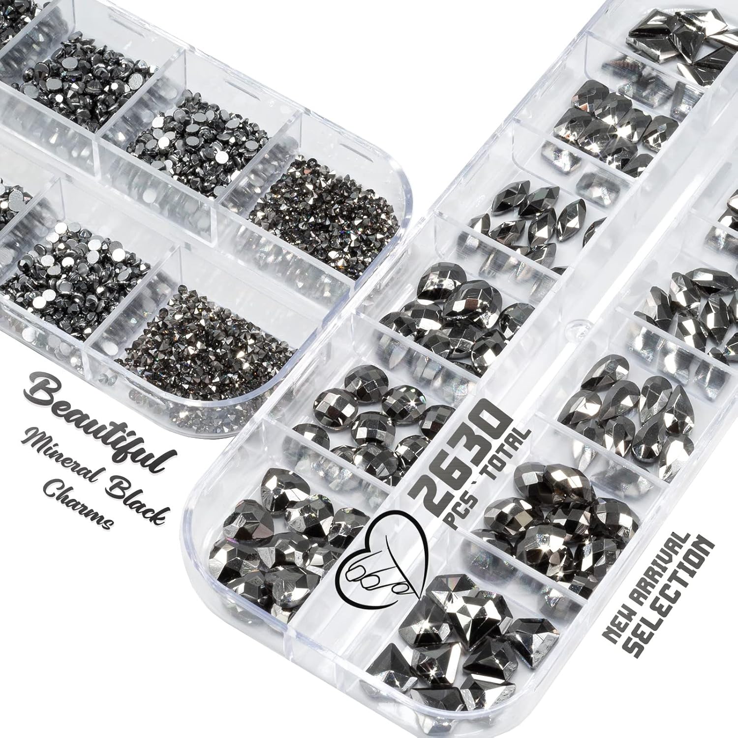 - ❤【2 Boxes 24 Grids Crystal Mine Black Nail Rhinestones + Stainless Steel Tweezer + Pickup Pen】Total 2630pcs sparkling mine black rhinestones nail crystals. Including 120pcs multi-shaped crystal rhinestones, 2510pcs multi-sized round crystal gem rhinestones. Enough amounts and more shape options for your daily work, go out or other decoration purposes. Comes with 1 Stainless Steel Tweezer and Pickup Pen for Manicure DIY Decoration at Home Salon Supplies.