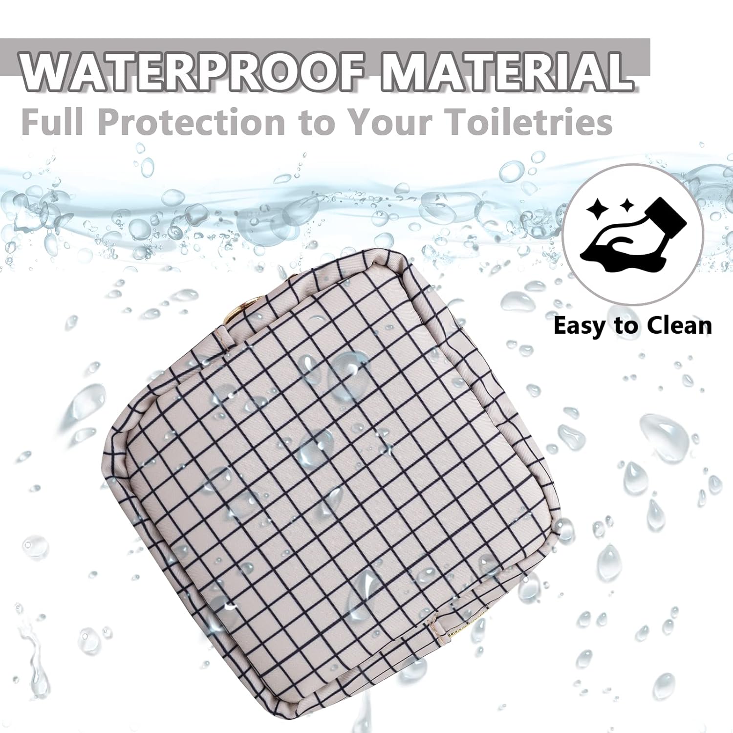 • 【High Quality Material】The cosmetic bag is constructed of lightweight and durable nylon fabric. It is waterproof and easy to clean, helping to protect your beauty, cosmetics and toiletries from water spillage accidents.It will not lose color after the wash.