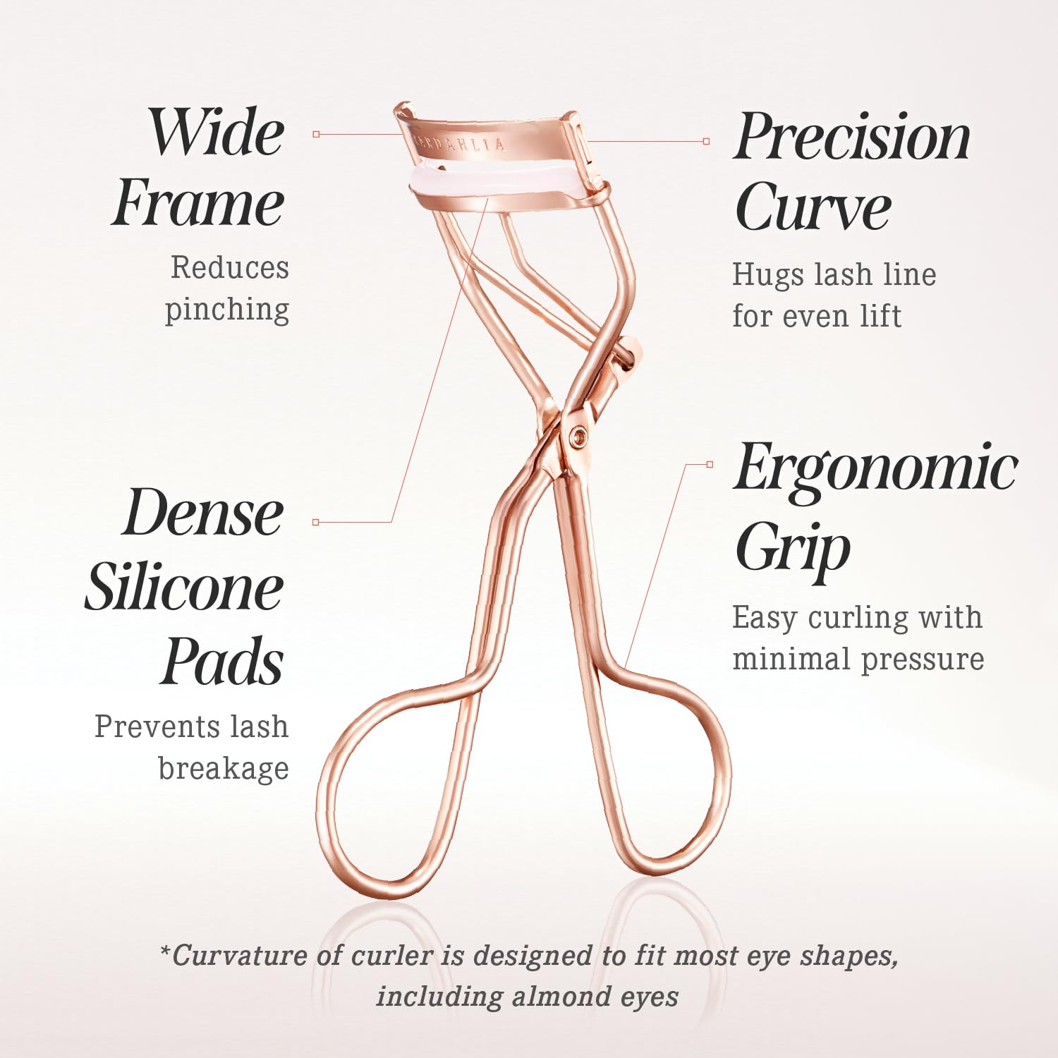 DEAR DAHLIA Dream Eyelash Curler - Premium Volume-Up Curl, Wide Opening, Pinch-Free Design. Painless with Comfort Grip & 2 Silicone Refill Pads Included. Made in Korea