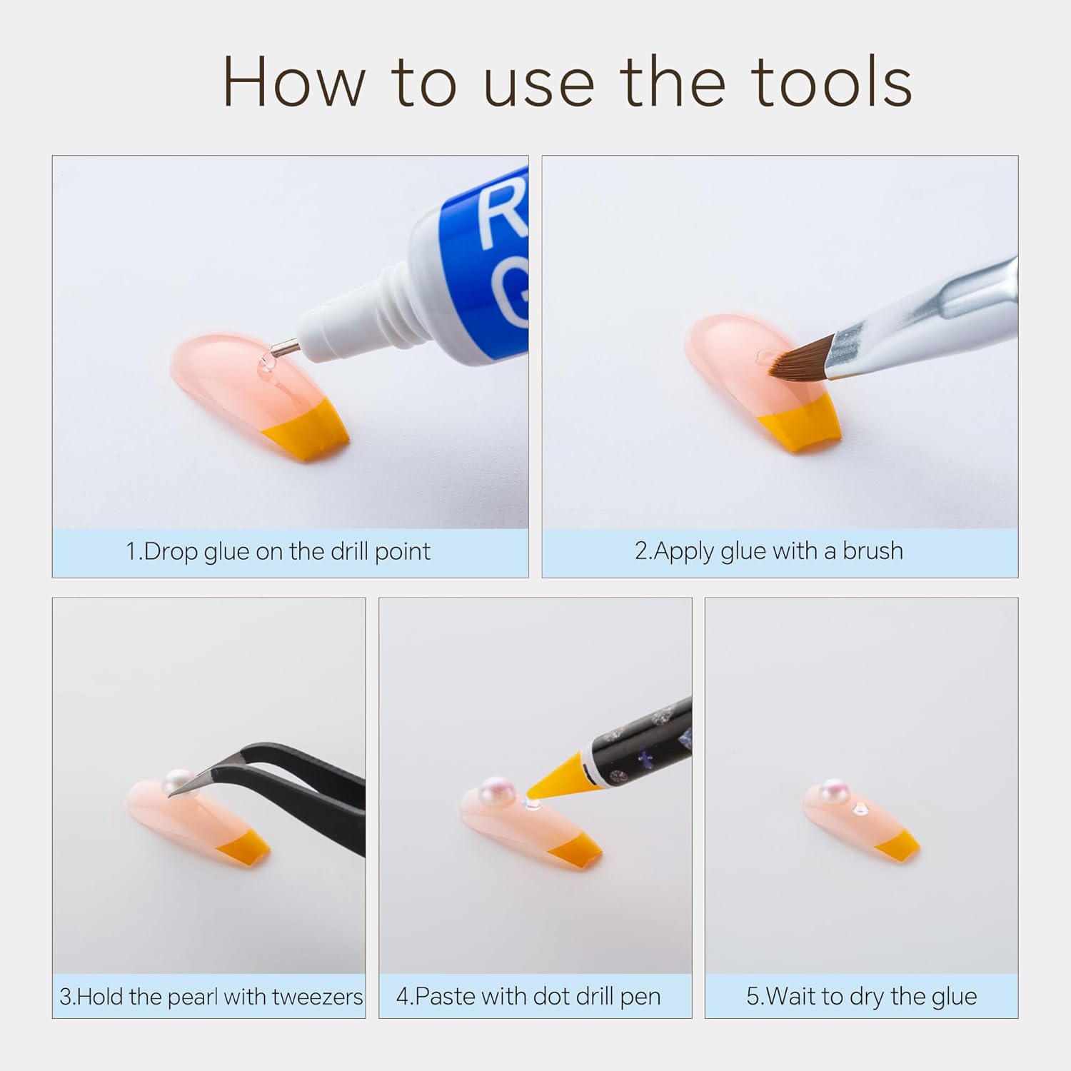 - Useful tools - These pearls and rhinestones have a flat back, which is excellent for easy placement.and you can pick up any large or small pearls and rhinestones with the crayons we bring along. And use the brush to smooth out the Gel, these tools will work very well