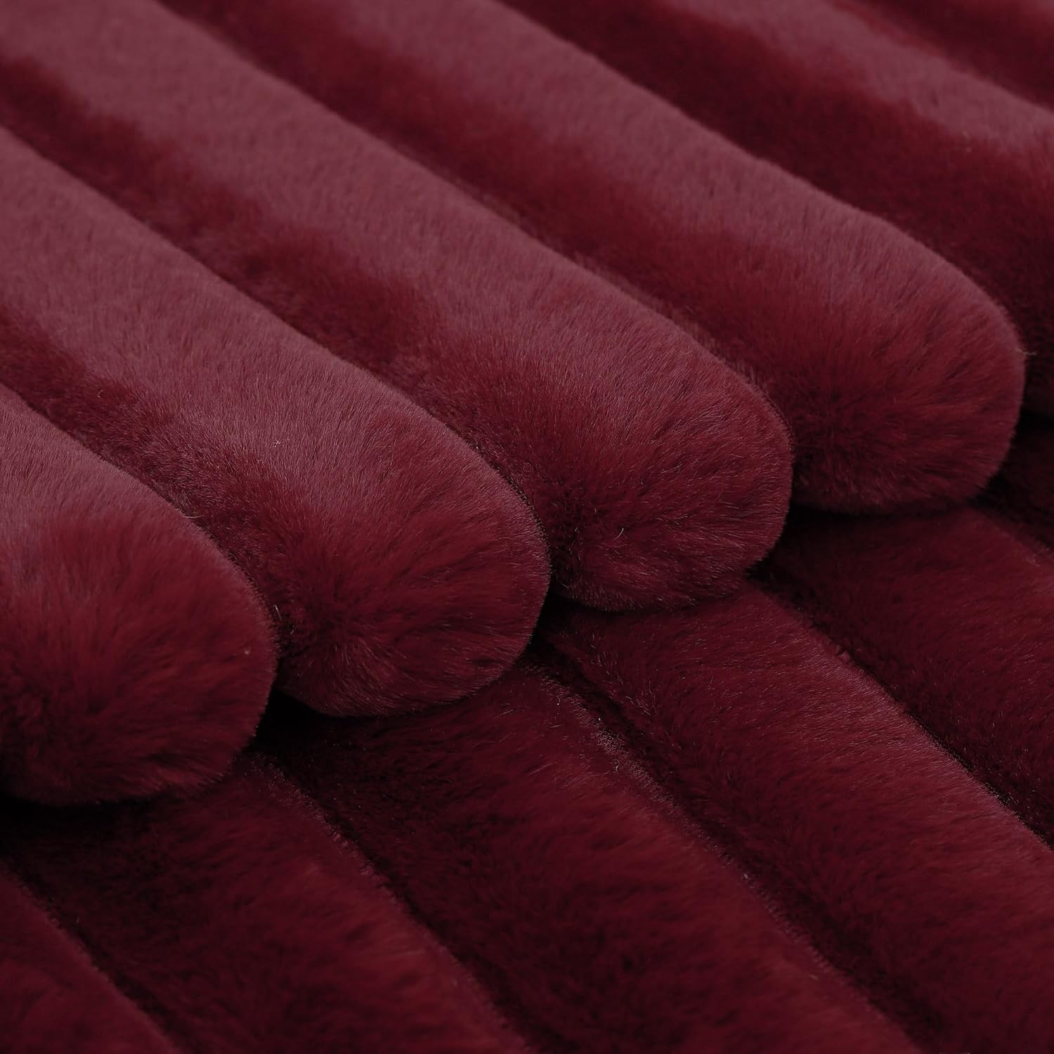 MADIZZ Set of 2 Faux Wool Plush Decorative Throw Pillow Covers 20x20 Inch Burgundy Fluffy Striped Soft Decorative Cushion Cover for Sofa Bedroom Pillow Shell