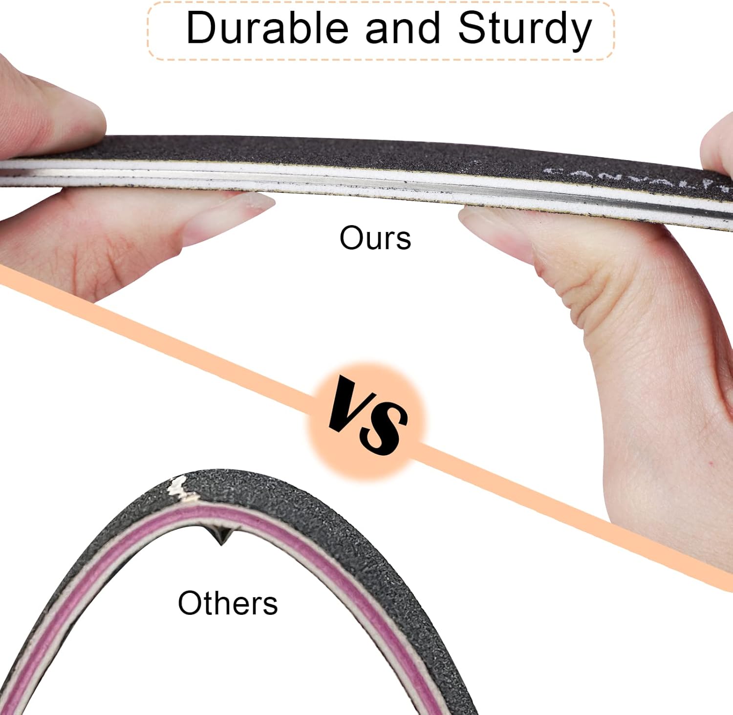 - 40 PCS Peel and Stick Nail Files: Perfect nail file size: 7.1x 0.59 x 0.2 inches, 240 grit, half-moon shaped, disposable nail files for easy to grip and comfortable to use. These emery boards just stick on the metal base to use, it can be pasted on both sides
