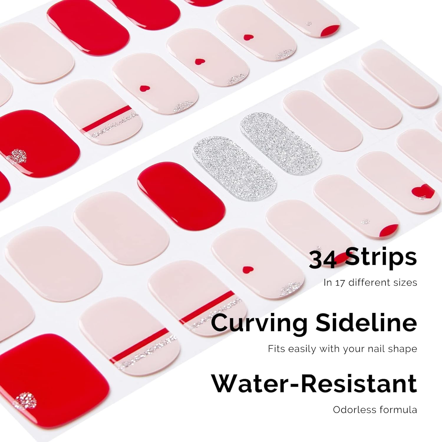 NAILOG Valentines Semi Cured Gel Nail Strips 34 pcs, Buy 2 Get 1 UV Lamp, Salon-Quality Gel Nail Stickers, Valentines Day Gel Nail Wraps with Soft Gel Finish | Love Note