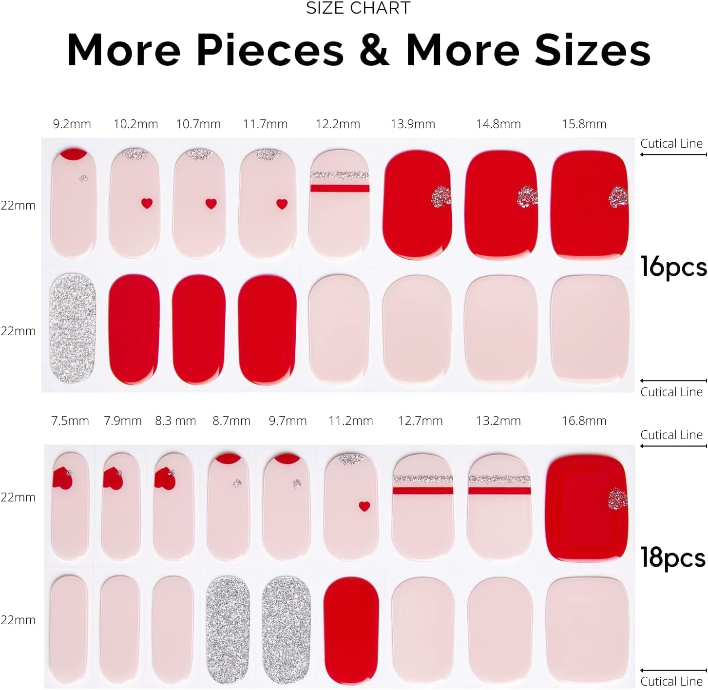 - ăValentines day NAIL STRIPSăMore Quantity & Sizes than Ever! - With 17 different sizes of our nail art stickers, you can easily find the right size to match your nails. - New curved side line fits even better with your nail shape for seamless adhesion.