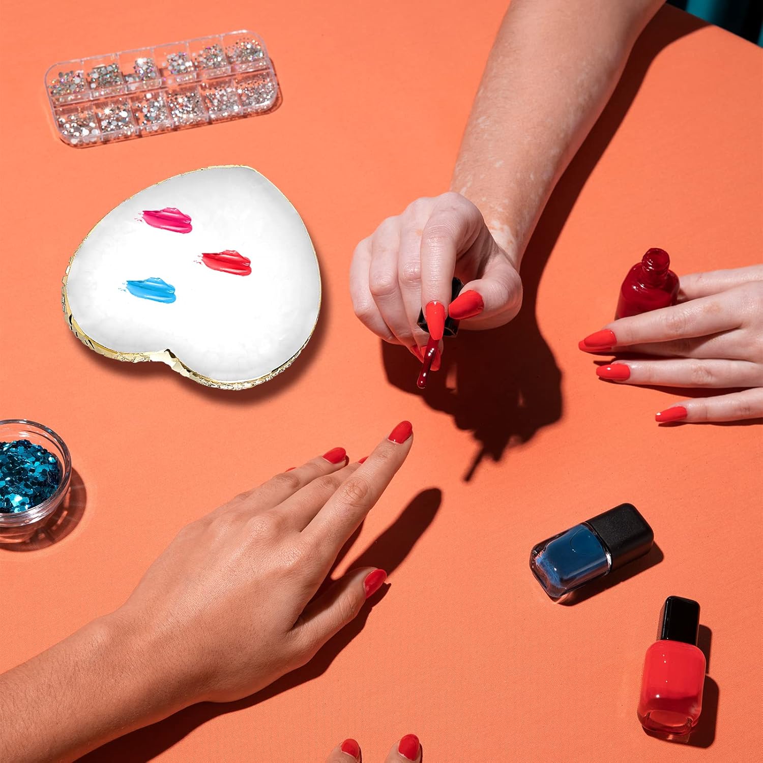 • 【Heart Shape】The nail palette is designed in a heart shape, which looks small and cute, and the edge is designed with gold binding, exquisite and practical, you can mix the colors and pigments you want at will
