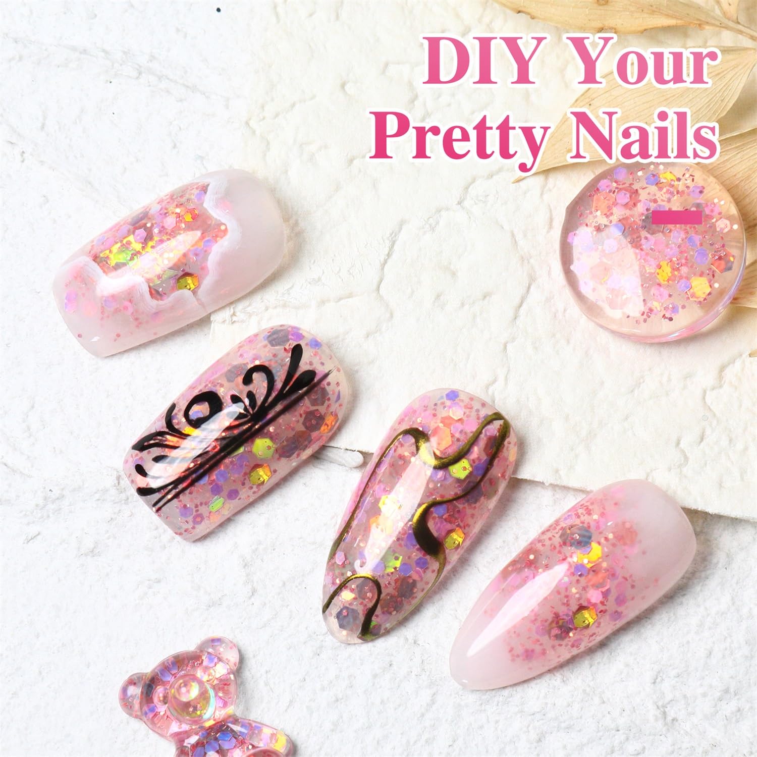 - Double Rhythm GEL POLISH: 1PC 15ML sparkly glitter pink gel polish offers a hassle-free application, super pretty sequins gel will bring you a different style manicure. Must apply with Base Gel and Top Coat, all need at least 60s UV / LED Lamp cure.