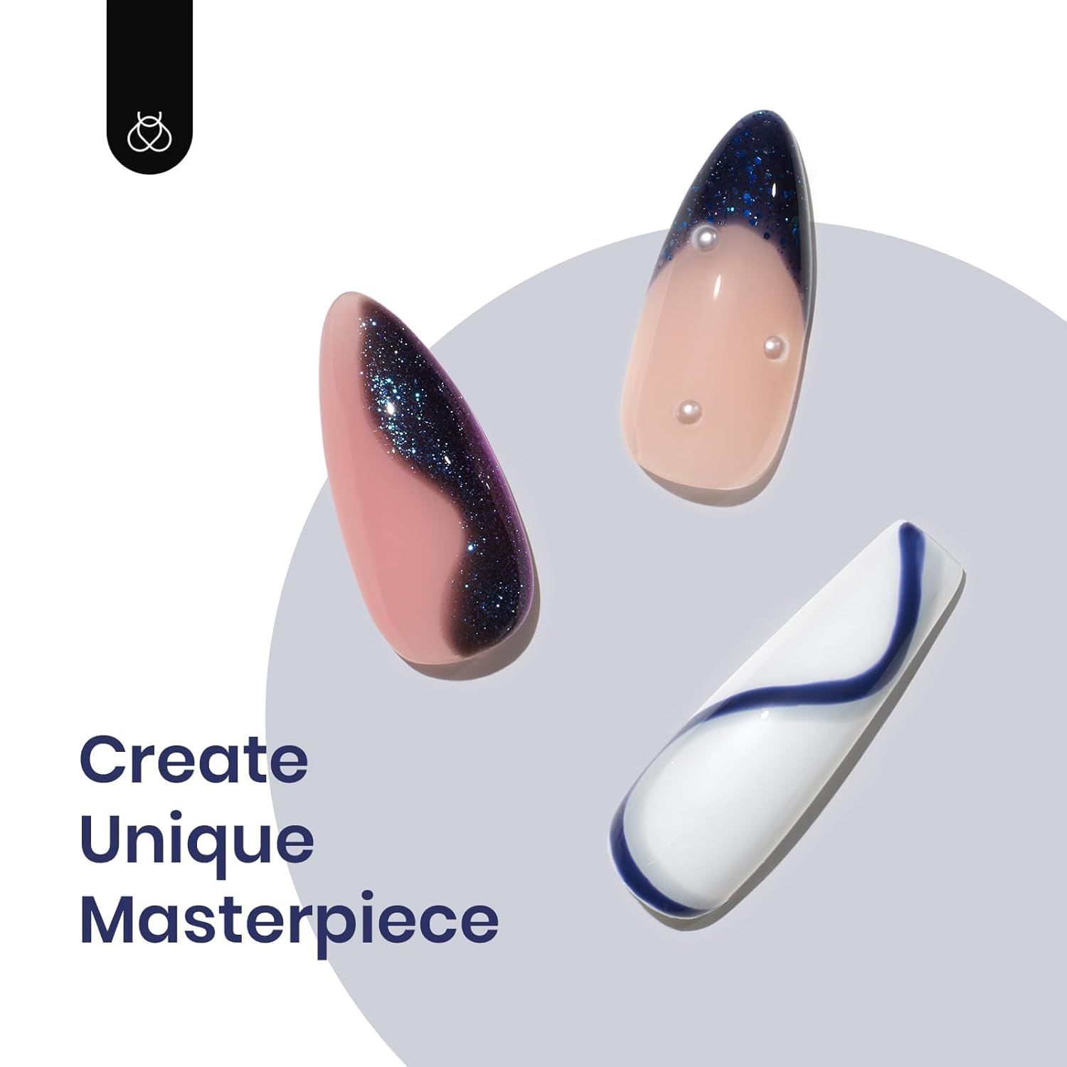 • Environmental & Healthy: The Starry Nightfall gel nail polish set - a 6-color gel polish kit with sparkly blue and white nail gel polish - The shiny blue and white nail polish, with the right application, can maintain a shiny texture for up to 21 days, suitable for beginners and professional manicurists.