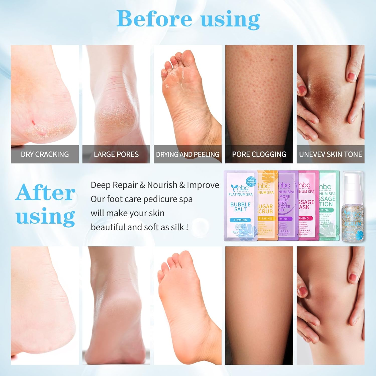 - āØ[6 Treatments] Our deluxe pedicure spa kit consists of 6 product treatments which can accelerate to restore the smooth skin of your feet. The serum in it can be used multiple times.