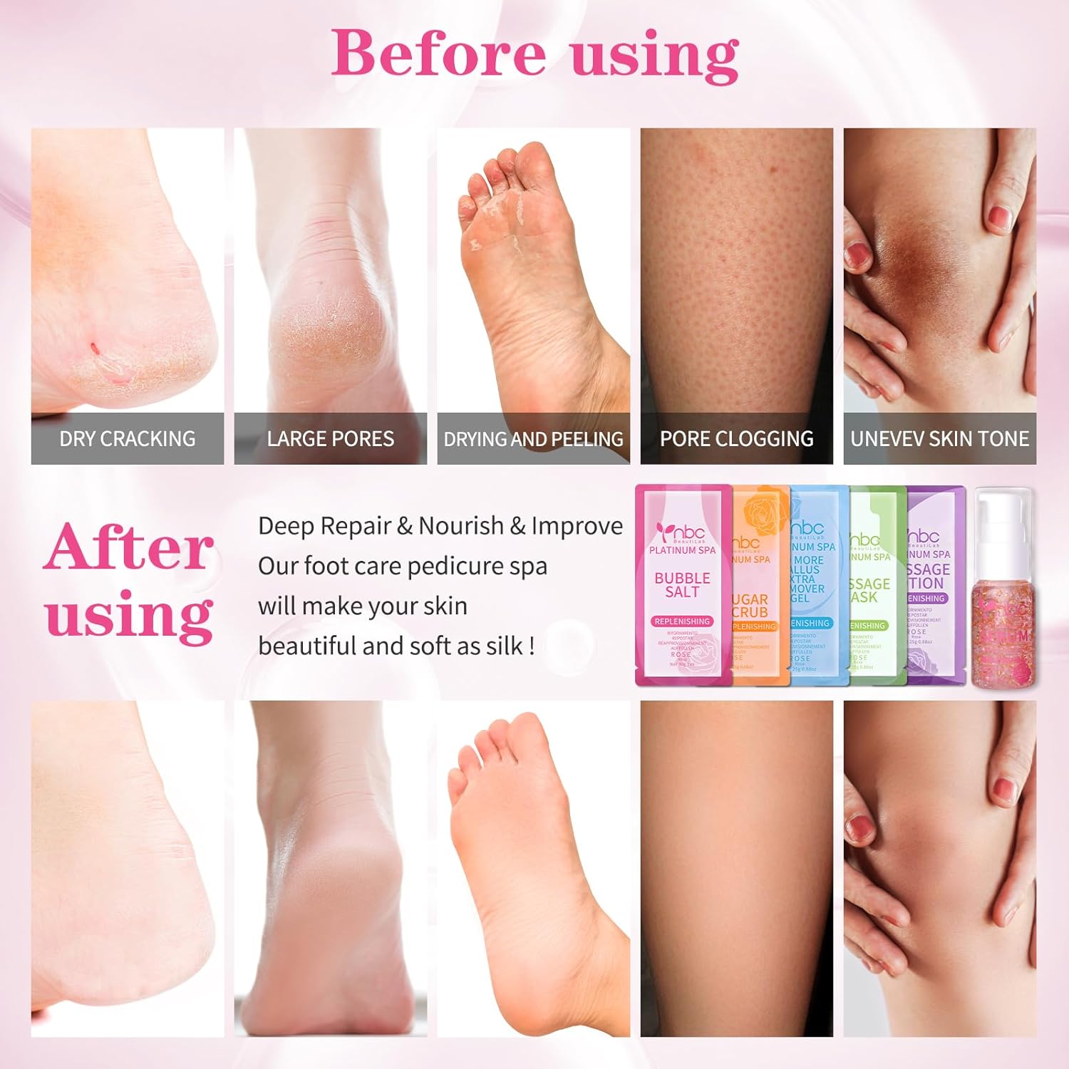 - πΏ[100% Natural and Harmless] The pedicure foot soak set does not contain any harsh chemicals or other potentially irritating ingredients harmful to the skin. Our products are formulated to be gentle, non-irritating, and suitable for all skin types.