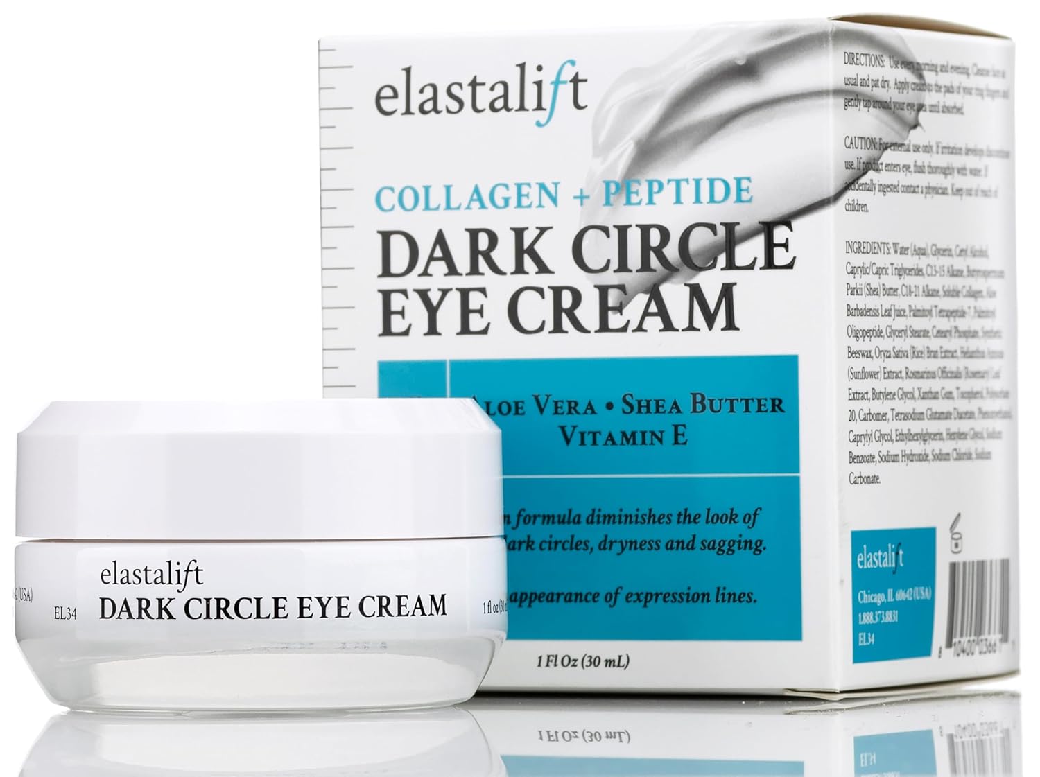 - Our Promise β Trust in Elastaliftβs scientific skin care. Your Dark Circle Eye Cream is made with quality ingredients to ensure the formula exceeds our standards and yours. Nourish, soothe, & protect your skin while reducing the pesky appearance of dark circles, puffiness, sagging skin, & wrinkles with this Elastalift Collagen + Peptide Corrector Eye Cream.