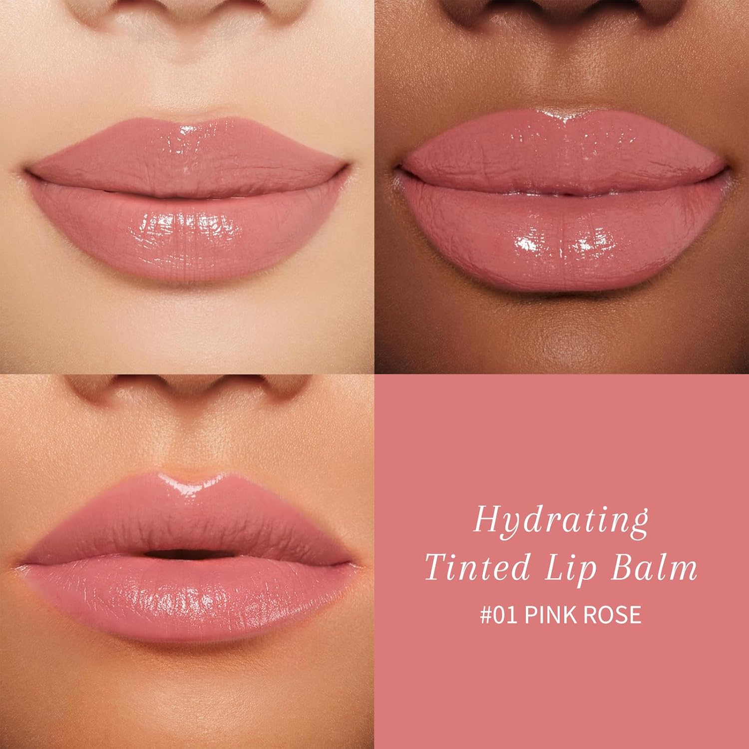 Tinted Lip Balm Plumper, Glossy, Pump Lips, Lightweight, Moisturize & Tint with Jojoba Seed Oil, Vegan Lipbalm Lip Care, Pink Rose