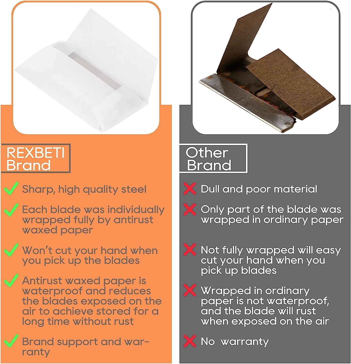 REXBETI 400PCS Single Edge Razor Blades, Industrial Scraper Razor Blades, One Edge Razor Blade, Replacement Box Cutter Blades, Suitable for Removing Labels, Decals, Stickers