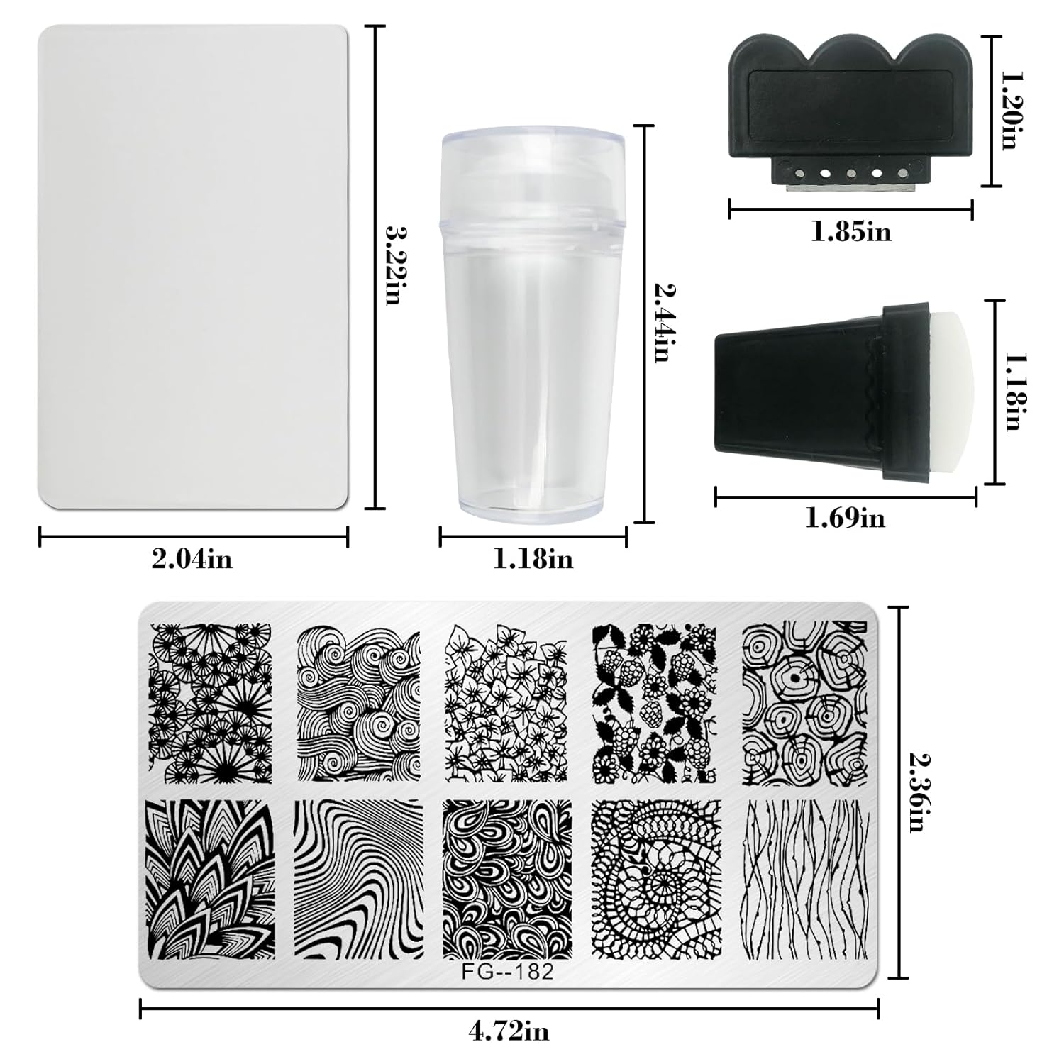 - Nail stamper kit for nail art enthusiasts: come with 7pcs nail stamping plate with 2 different nail stamper and scraper. Professional nail stamp stencils are great manicure tools for salon and home diy nails design