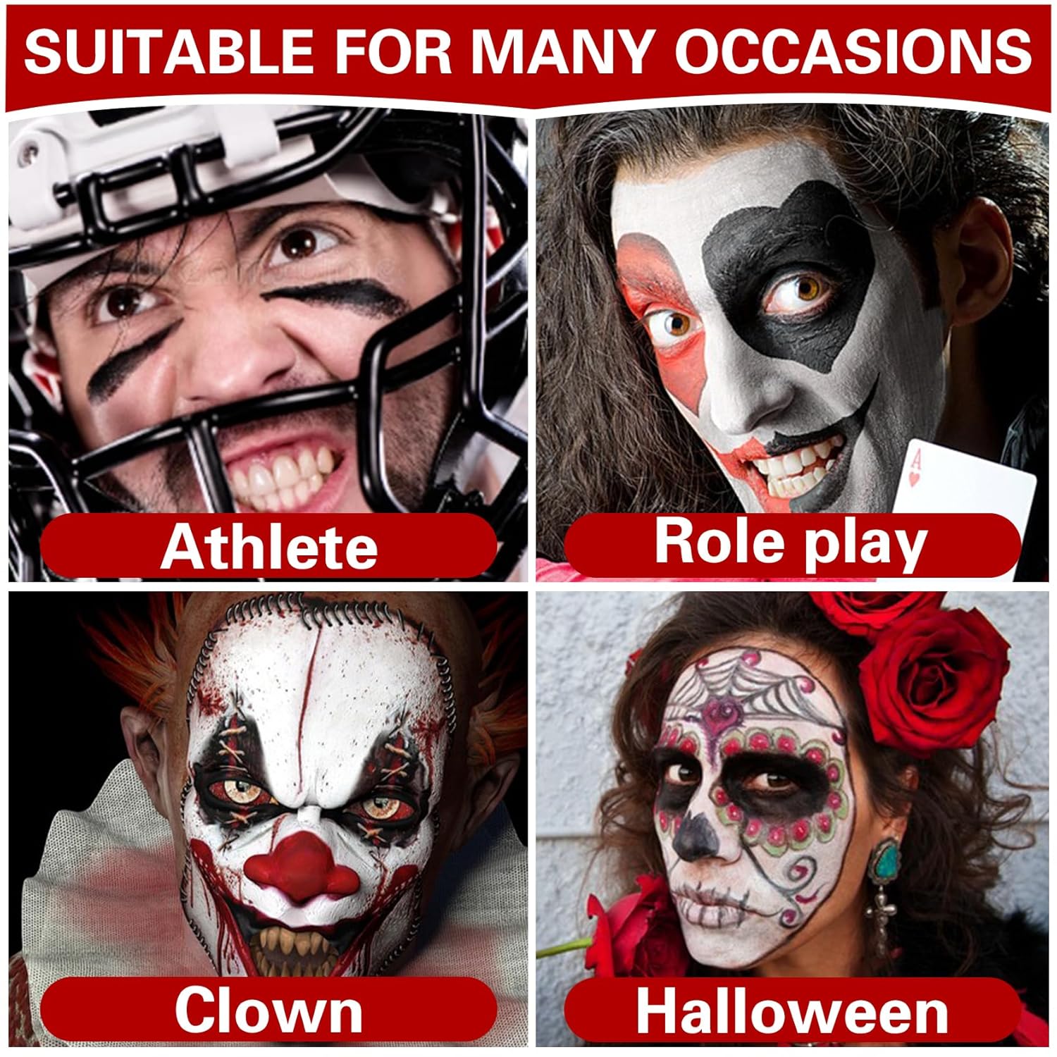 - 【Safe Ingredients】The face body paint is made of natural and safe ingredients, which are gentle and skin-friendly, and are also very friendly to adults and children, suitable for all skin types. Both beginners and professional makeup artists can use it to create bold, dramatic looks.