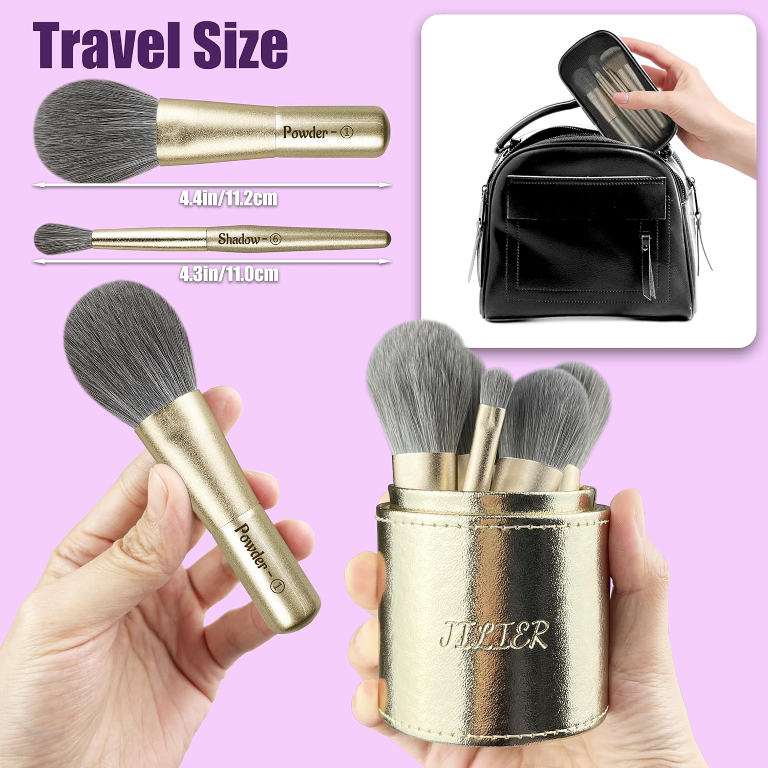 - ăTravel Size Makeup Brushesă: Jilier mini make up brush sets with case, easy to carry, suitable for travel or outdoor use, as well as daily makeup.