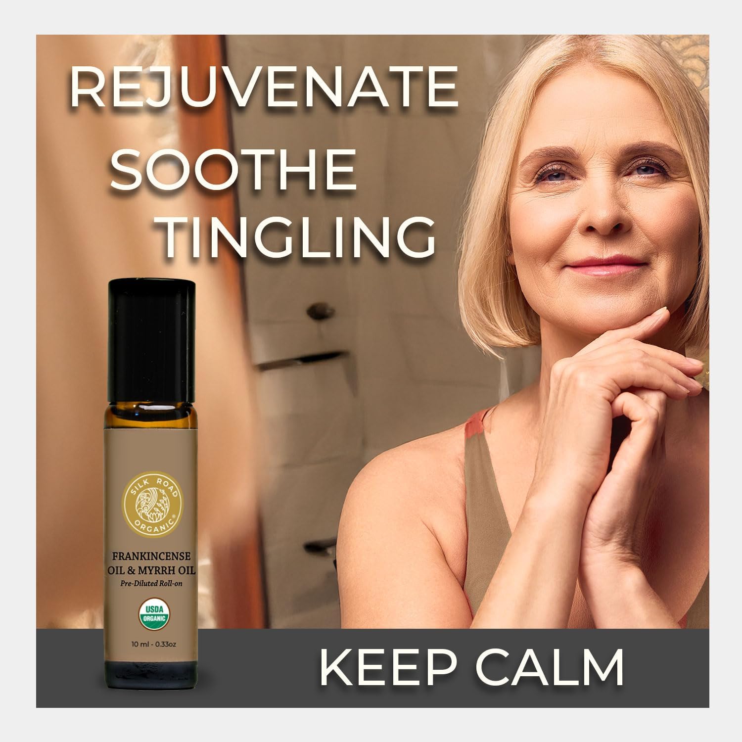Silk Road Organic Frankincense Oil & Myrrh Essential Oil Roll On, 100% Pure USDA Certified Aromatherapy for Body Aches, Stiffness & Tingling, Stress Relief, & Skin - 10 ml Roller