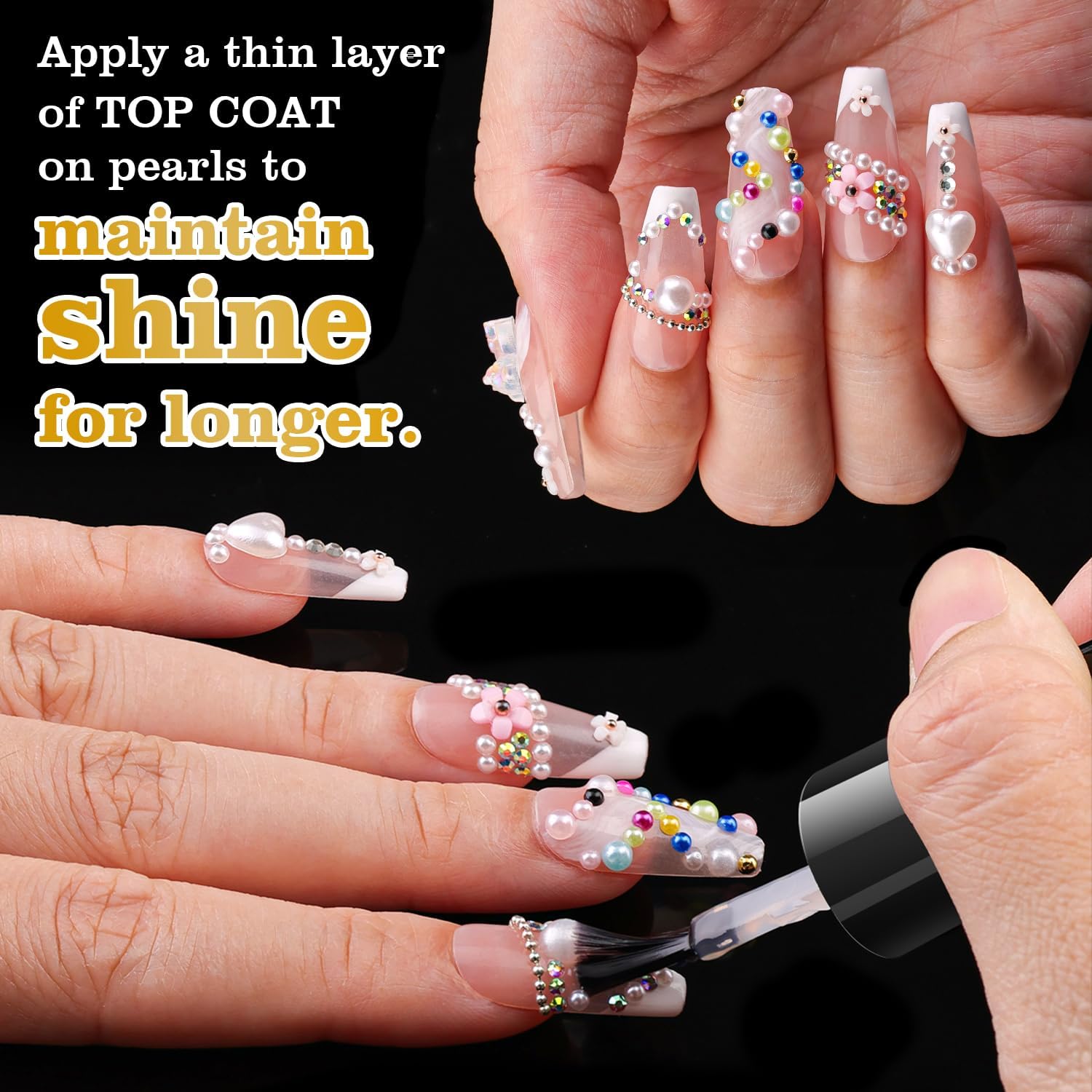 • 💎CHARMING COLORS & DISTINCTIVE EXTERIOR -- The clear color diamonds are luxurious and versatile that can be applied to multiple scenes. The AB color nail jewels can reflect bright light with iridescent glamour. All the nail crystals are featured with exquisite shapes and cutting facets. Our half-round pearl beads in colors of white and beige are smooth and glossy. We suggest applying a top coat over the pearls after completing your nail art to better maintain the pearls' luster and color.