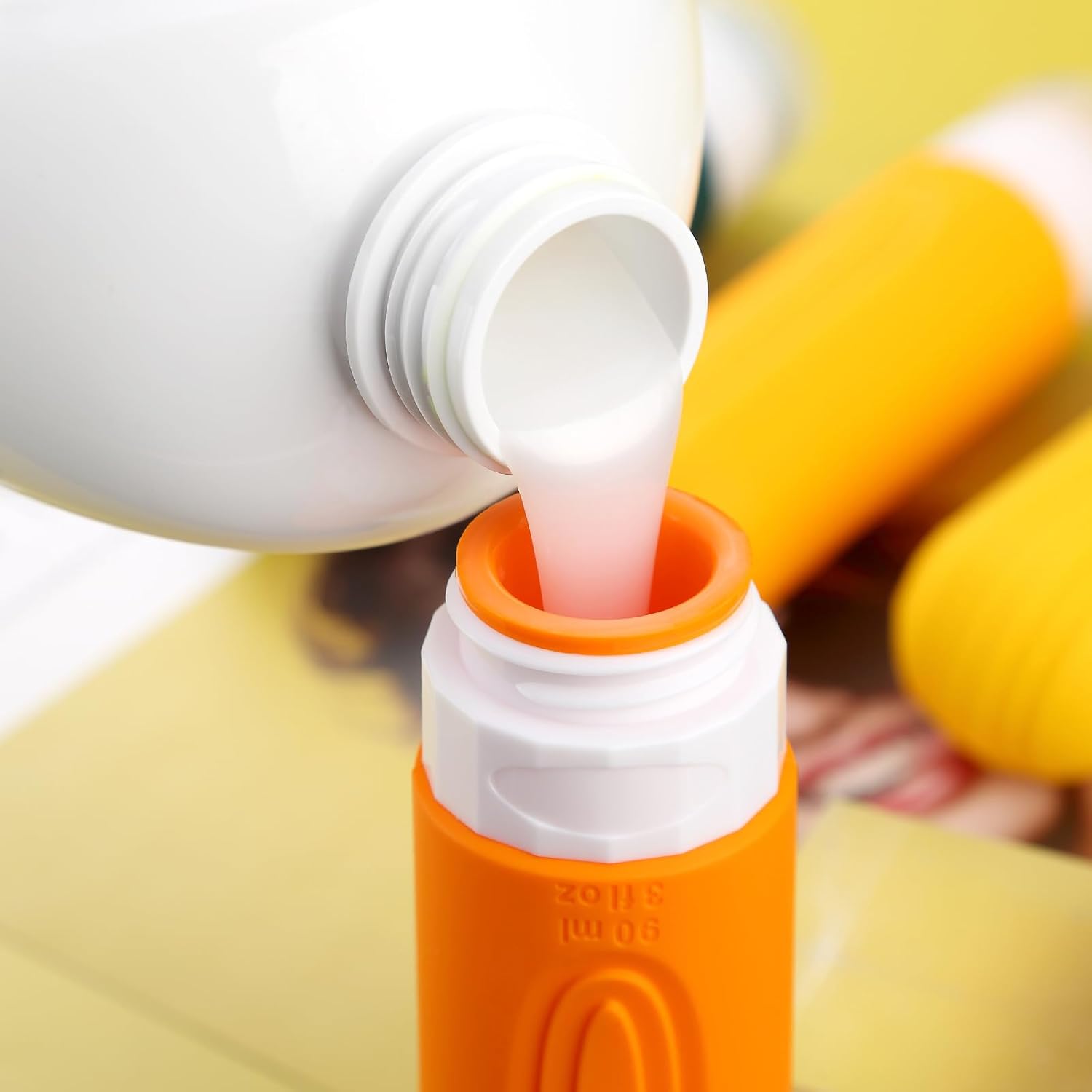 Travel Bottles for Toiletries, Tsa Approved 3oz Travel Size Containers BPA Free Leak Proof Refillable Liquid Silicone Squeezable Travel Accessories for Shampoo Conditioner Lotion (4 Pack)