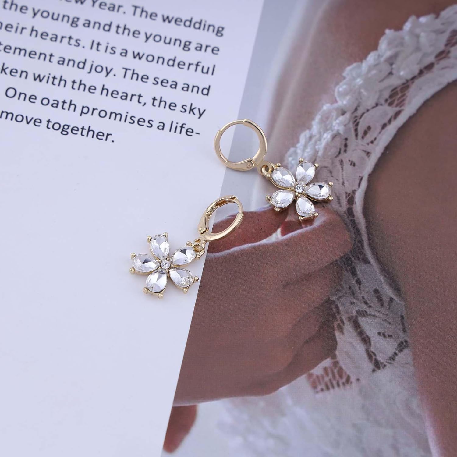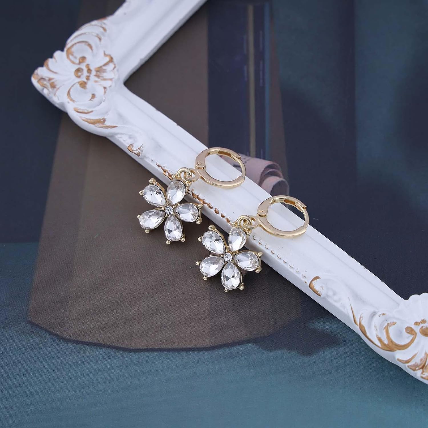 Vintage Emerald Flower Drop Earrings Green Crystal Flower Earrings Cz Flower Dangle Earrings Gold Huggie Hoop Earrings Jewelry for Women and Girls