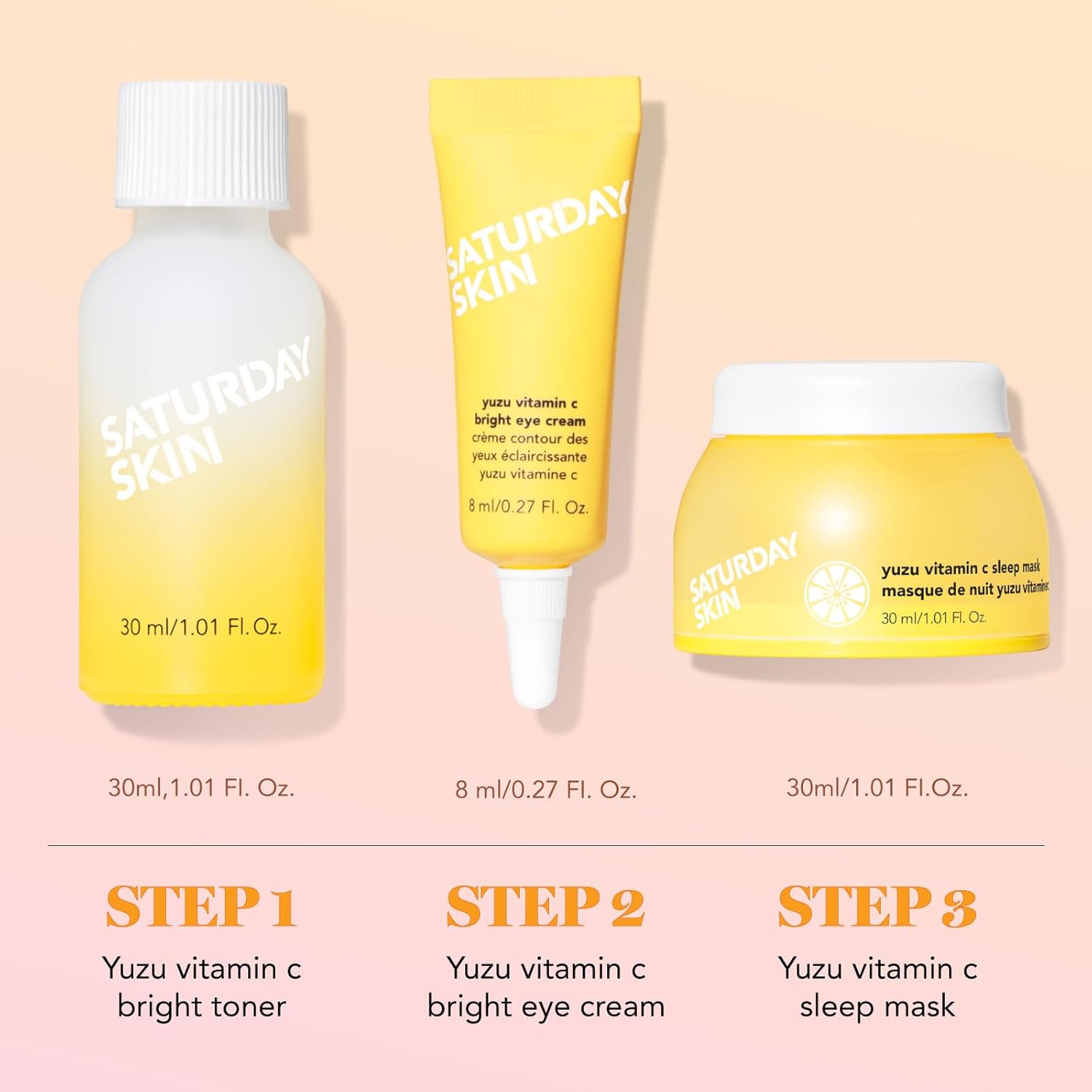 Saturday Skin 3-Piece Skin Care Set Yuzu Vitamin C Sleep Mask Yuzu Vitamin C Bright Toner and Eye Cream Overnight Facial Masks Korean Beauty Best Vitamin C Skincare Set