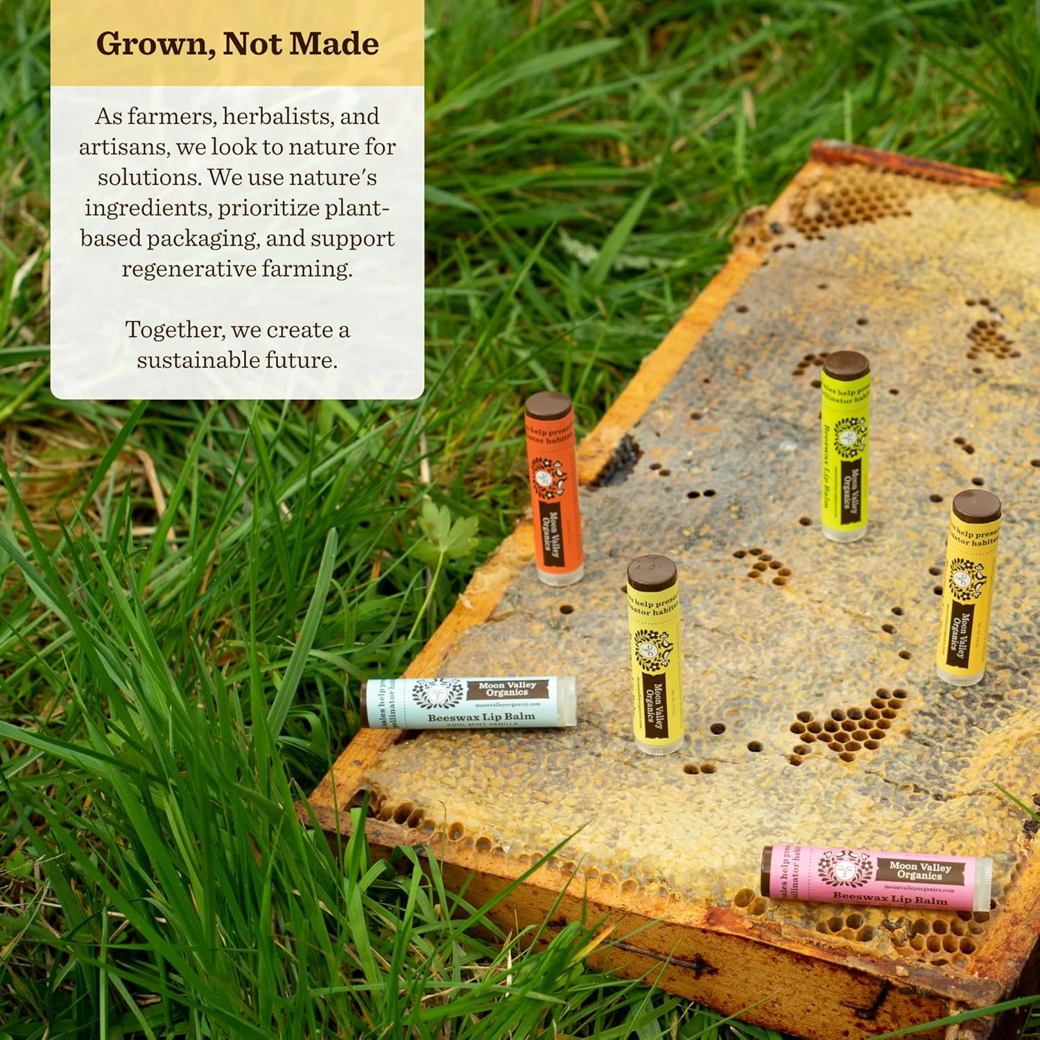 Moon Valley Organics Beeswax Lip Balm for Moisturizing Lips and Cuticles (SWEET HONEY, 6-Pack)