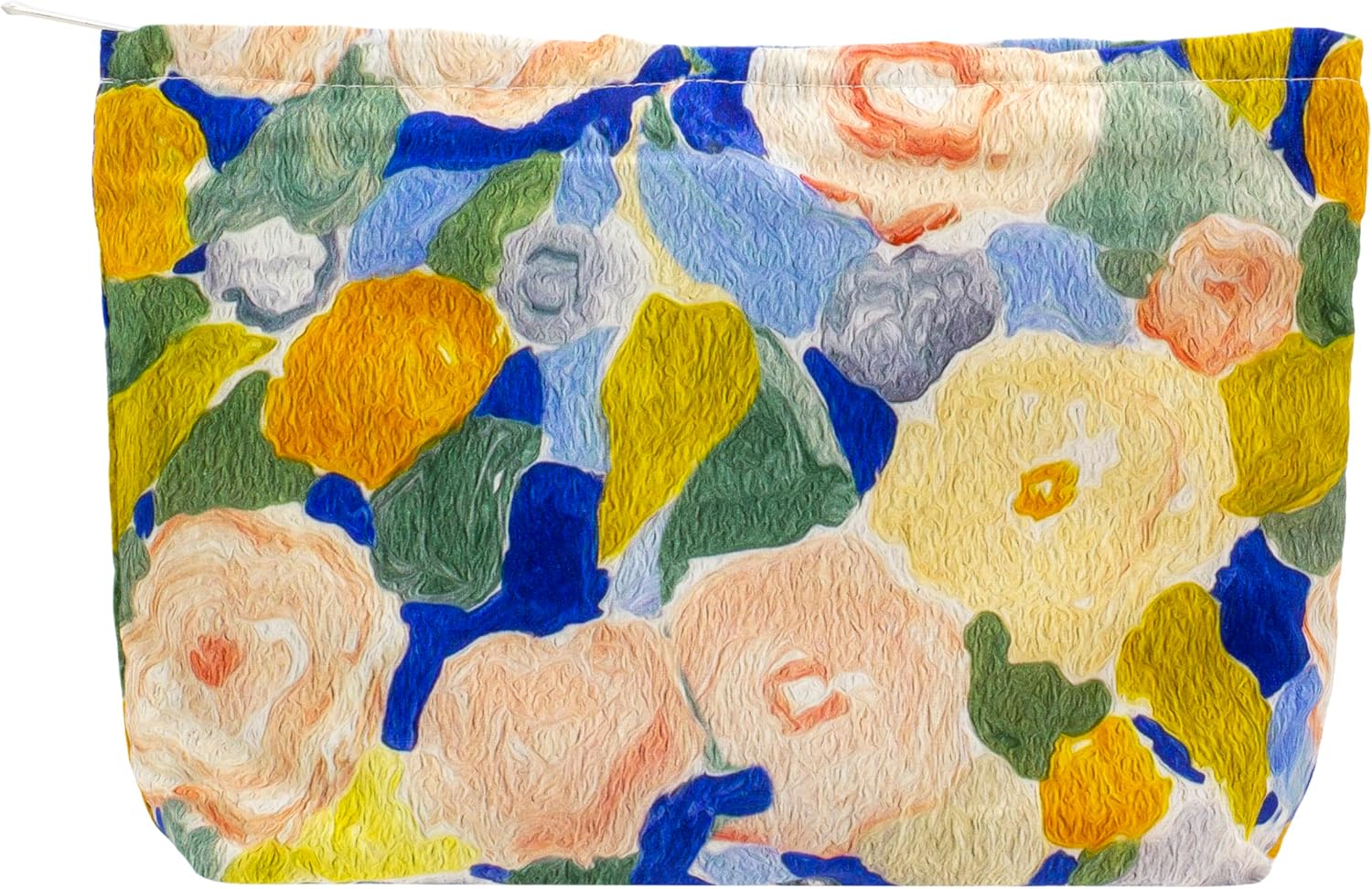 PAZIMIIK Floral Makeup Bag Large Cotton Zipper Pouch for Purse Travel Canvas Make Up Organizer for Women Cosmetic,Garden Blue