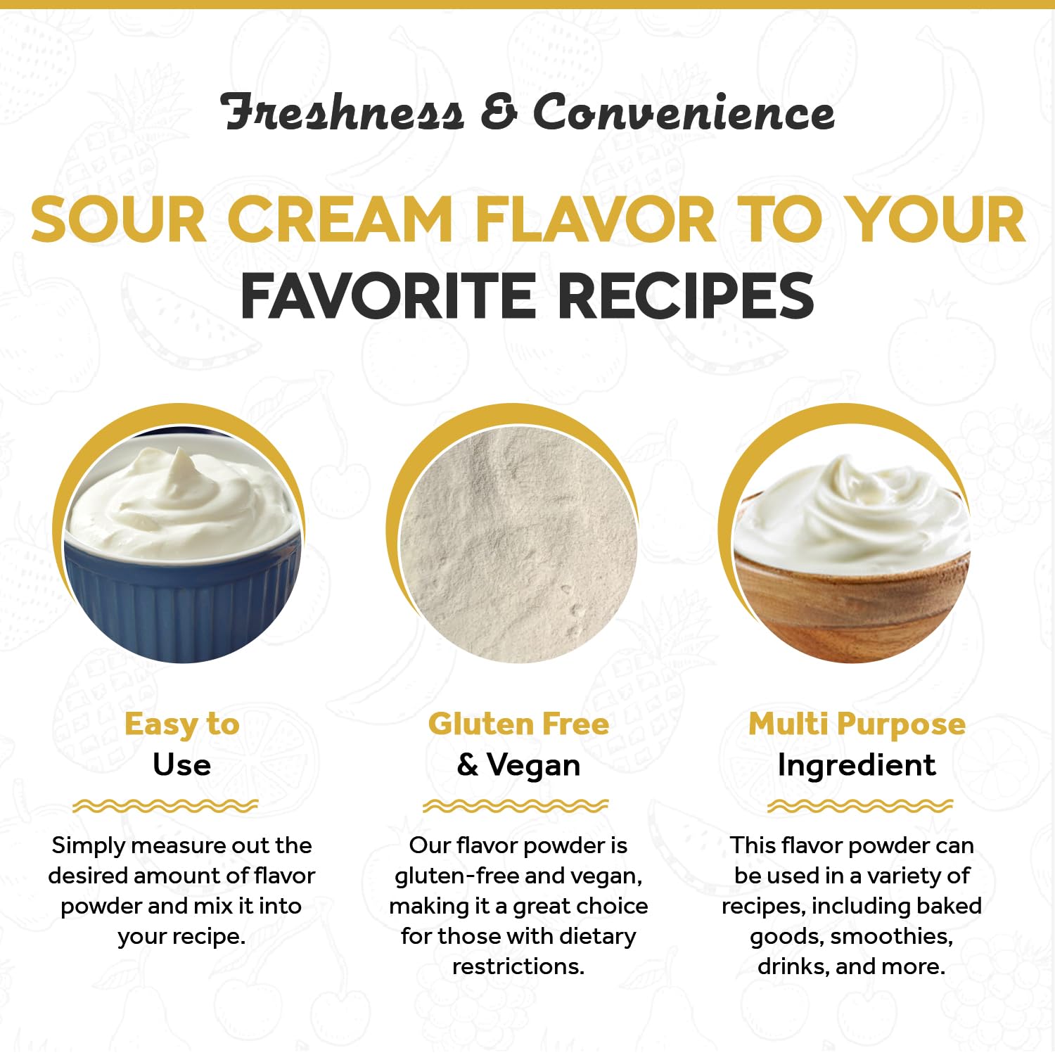 - ššš¬š² ššØ š®š¬š: Simply measure out the desired amount of Sour Cream flavor powder and mix it into your recipe. No need to chop, grind, or blend Sour Cream , as this powder provides all the nutty flavor you need in a convenient form.