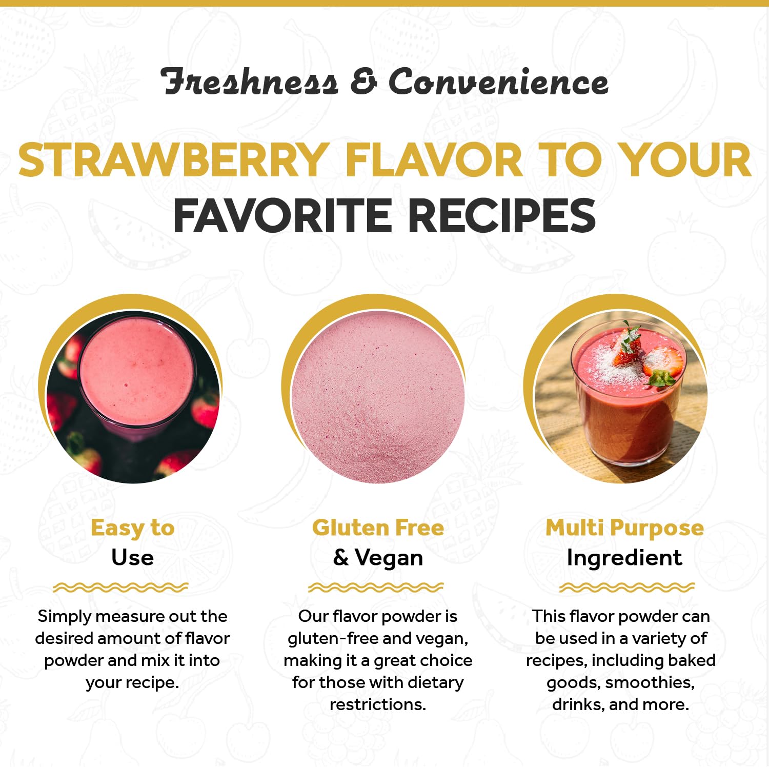 - ššš¬š² ššØ š®š¬š: Simply measure out the desired amount of Strawberry flavor powder and mix it into your recipe. No need to chop, grind, or blend Strawberry , as this powder provides all the nutty flavor you need in a convenient form.