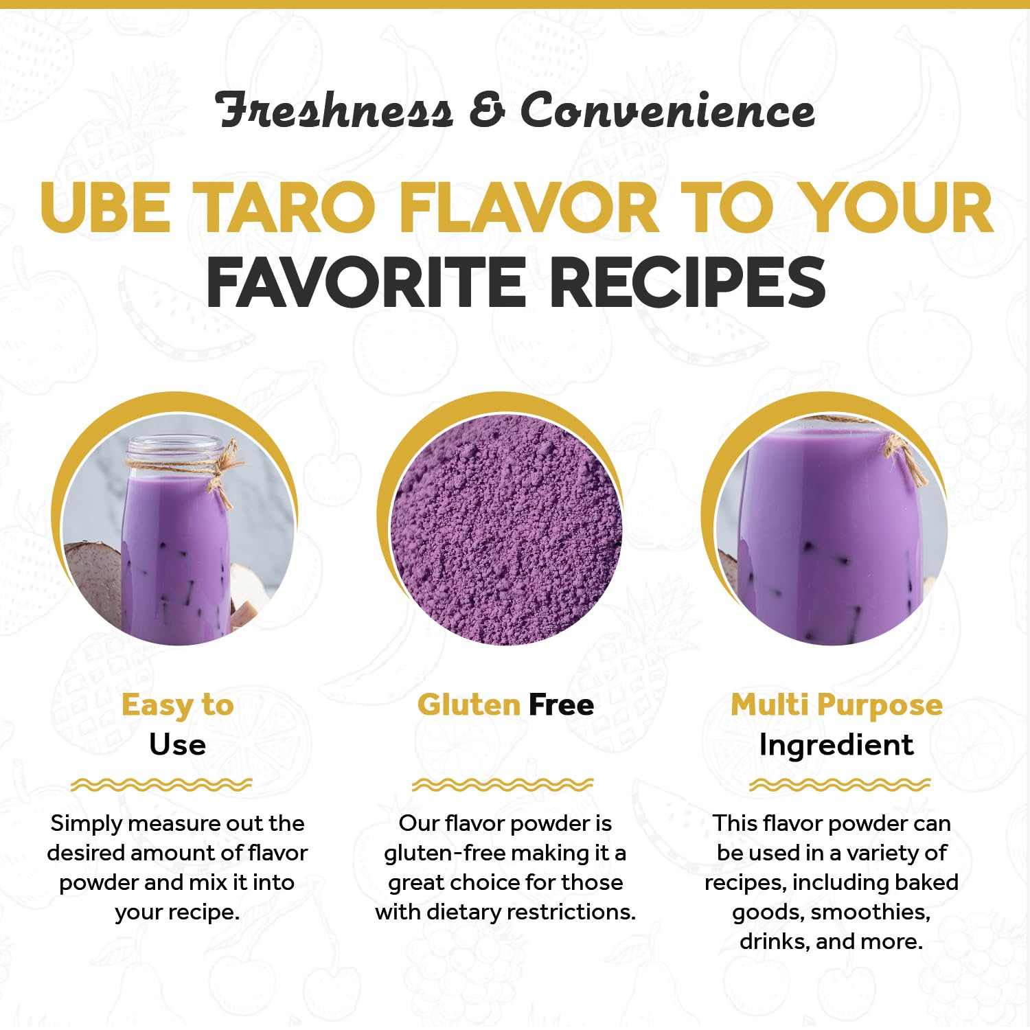- šš„š®ššš§-šš«šš šš§š šÆšš šš§: Our Ube Taro flavor powder is gluten-free and vegan, making it a great choice for those with dietary restrictions. It's a versatile ingredient that can be used in a wide range of recipes, including ones that are gluten-free or plant-based.