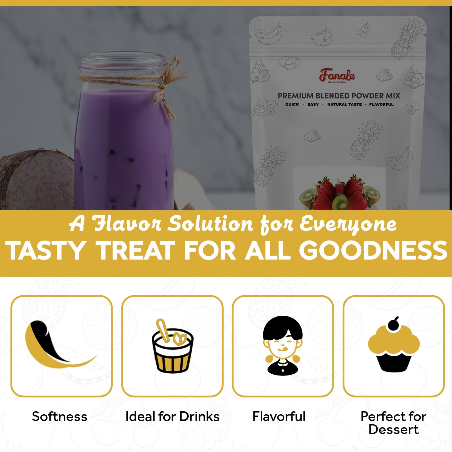 Fanale Premium Ube Taro Bubble Tea Flavoring Powder | Purple Sweet Potato Powder | Perfect for Baking, Smoothies, Desserts and Drinks | Instant Flavoring Powder for Boba Milk Tea - 2 Pounds (Pack of 10)