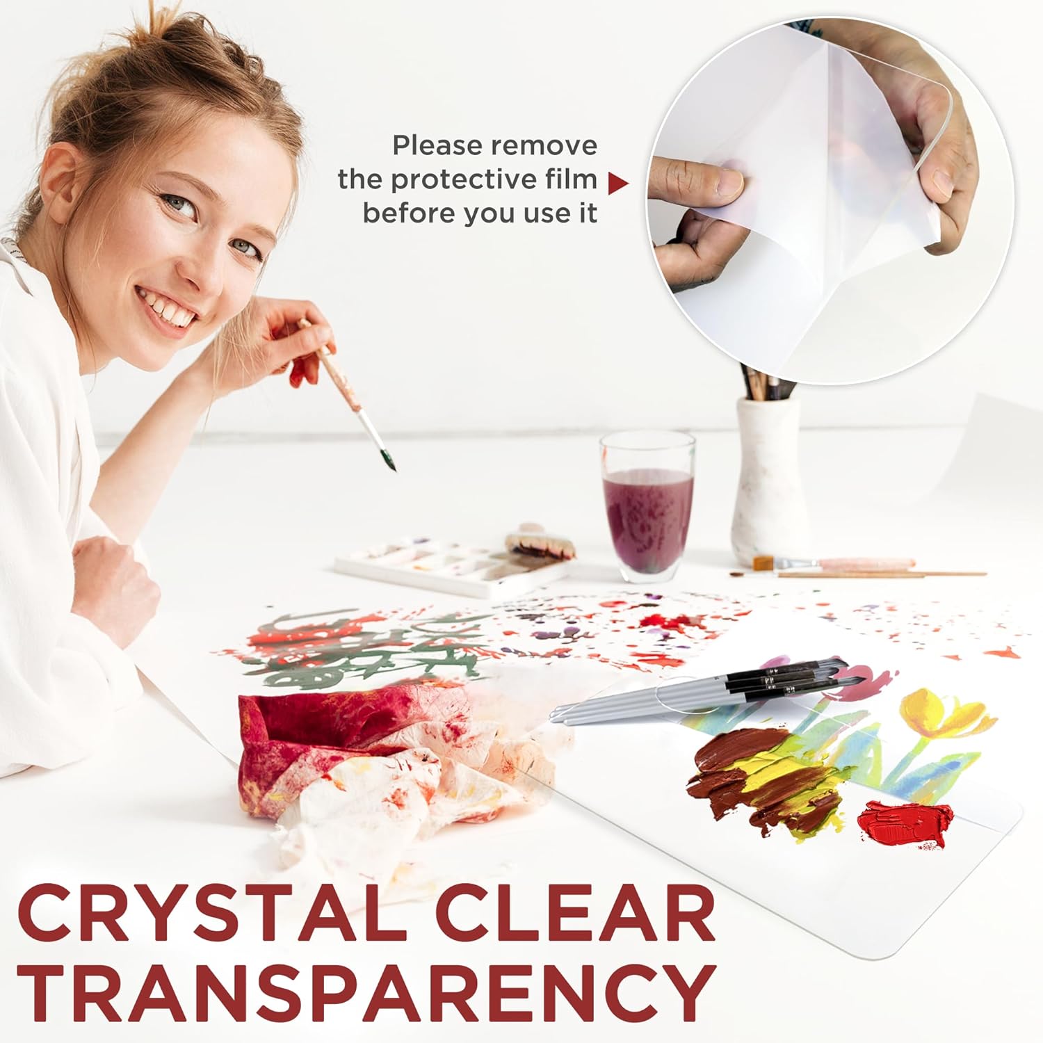 • Crystal Clear Transparency: Designed to be completely transparent, the palette offers the advantage of accurately evaluating the true colors and tones of paint without the concern of external elements causing discoloration. Please ensure to remove the protective films covering both sides of the palette before use.