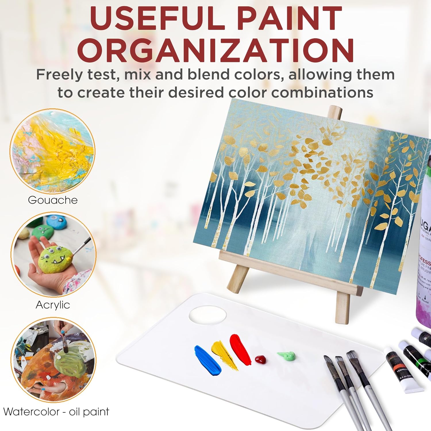 • Useful Paint Organization: The palette serves a simple yet crucial function for art enthusiasts. It provides a surface where artists can freely test, mix and blend colors, allowing them to create their desired color combinations.