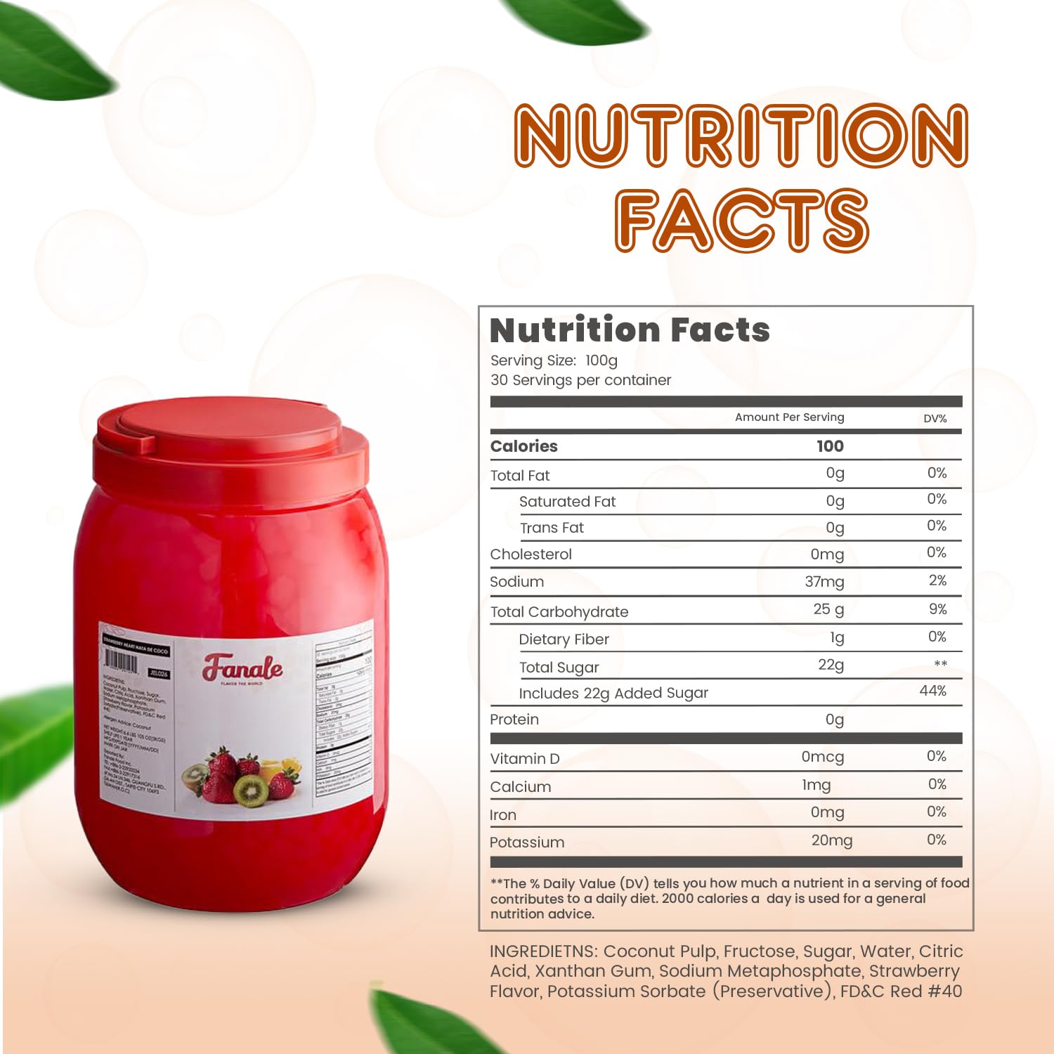 - šš°ššš šš§š šš±šØšš¢š š š„ššÆšØš«: Each Fanale coconut jelly boba tea variety is infused with sweet and exotic flavors that complement a range of recipes. This nata de coco jelly topping includes strawberry, lychee, blueberry, mango, sakura, green apple, coconut, Konjac, and coffee flavors, adding a distinct and delightful twist to your creations.