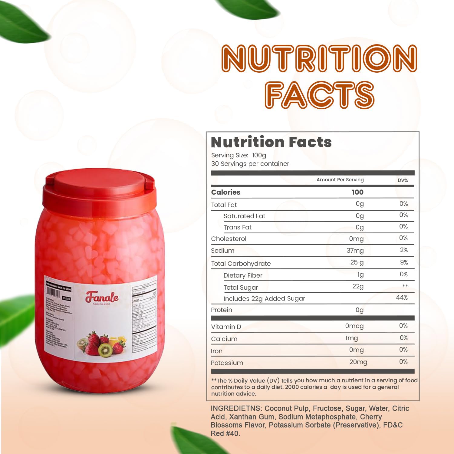 - šš°ššš šš§š šš±šØšš¢š š š„ššÆšØš«: Each Fanale coconut jelly boba tea variety is infused with sweet and exotic flavors that complement a range of recipes. This nata de coco jelly topping includes strawberry, lychee, blueberry, mango, sakura, green apple, coconut, Konjac, and coffee flavors, adding a distinct and delightful twist to your creations.