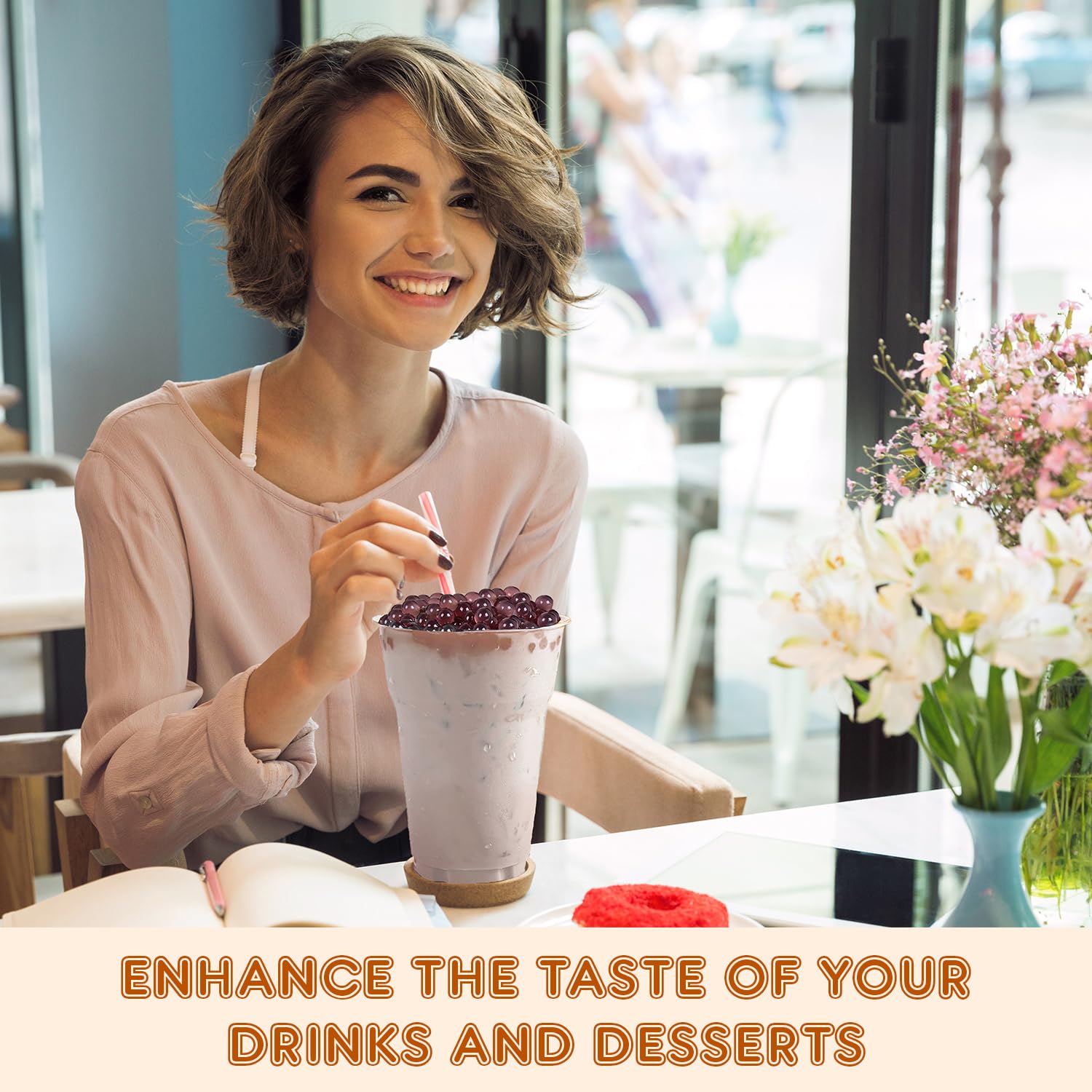 - ššššš„ ššØš©š©š¢š§š : Fanale Drinks Popping Boba Pearls are the ideal topping for desserts and drinks. They are a perfect addition to your smoothie, iced coffee, soft drink, shake, ice cream, frozen yogurt, and other desserts for extra flavor.