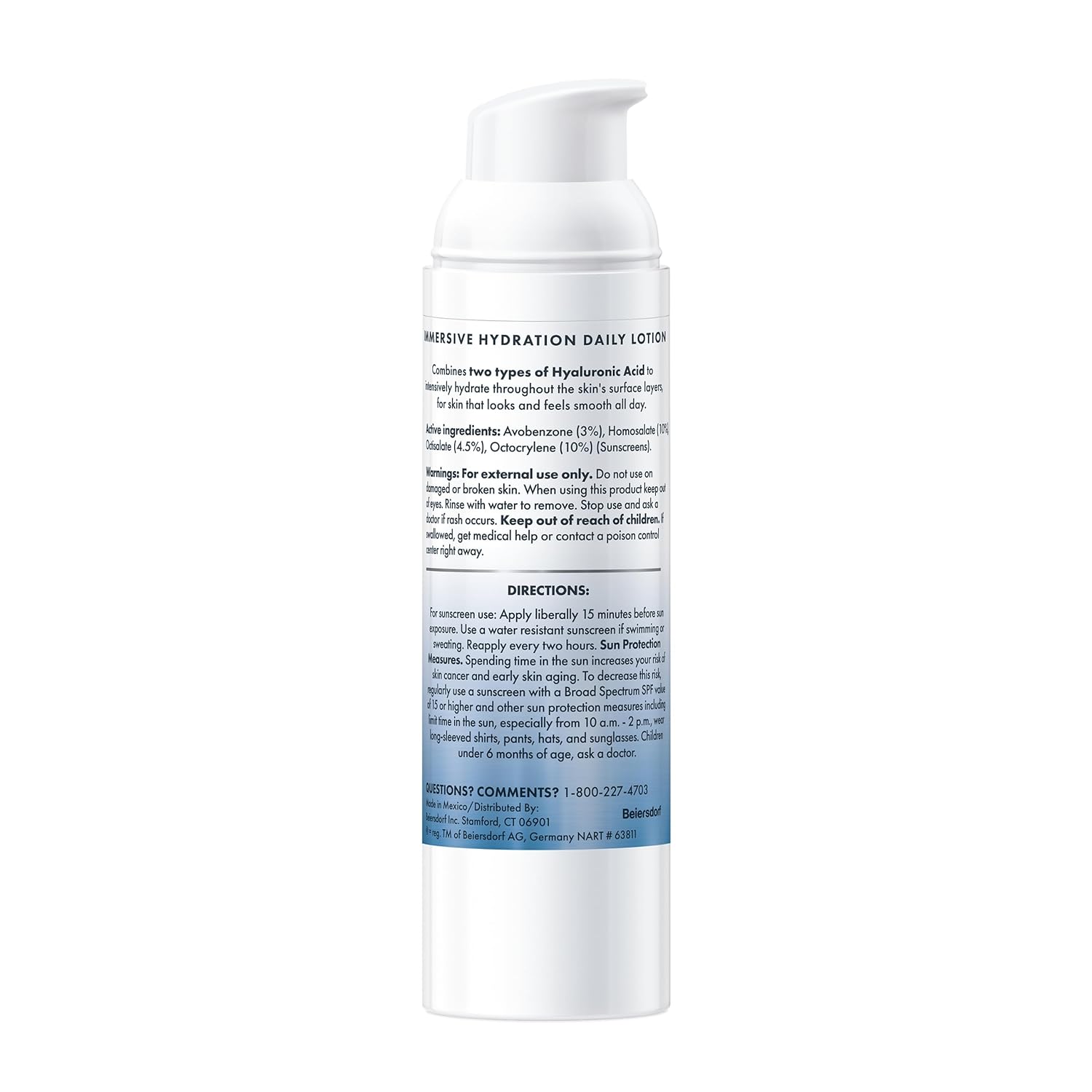 - Includes one (1) 2.5 fluid ounce bottle of Eucerin Face Immersive Hydration Daily Lotion Broad Spectrum SPF 30 Sunscreen