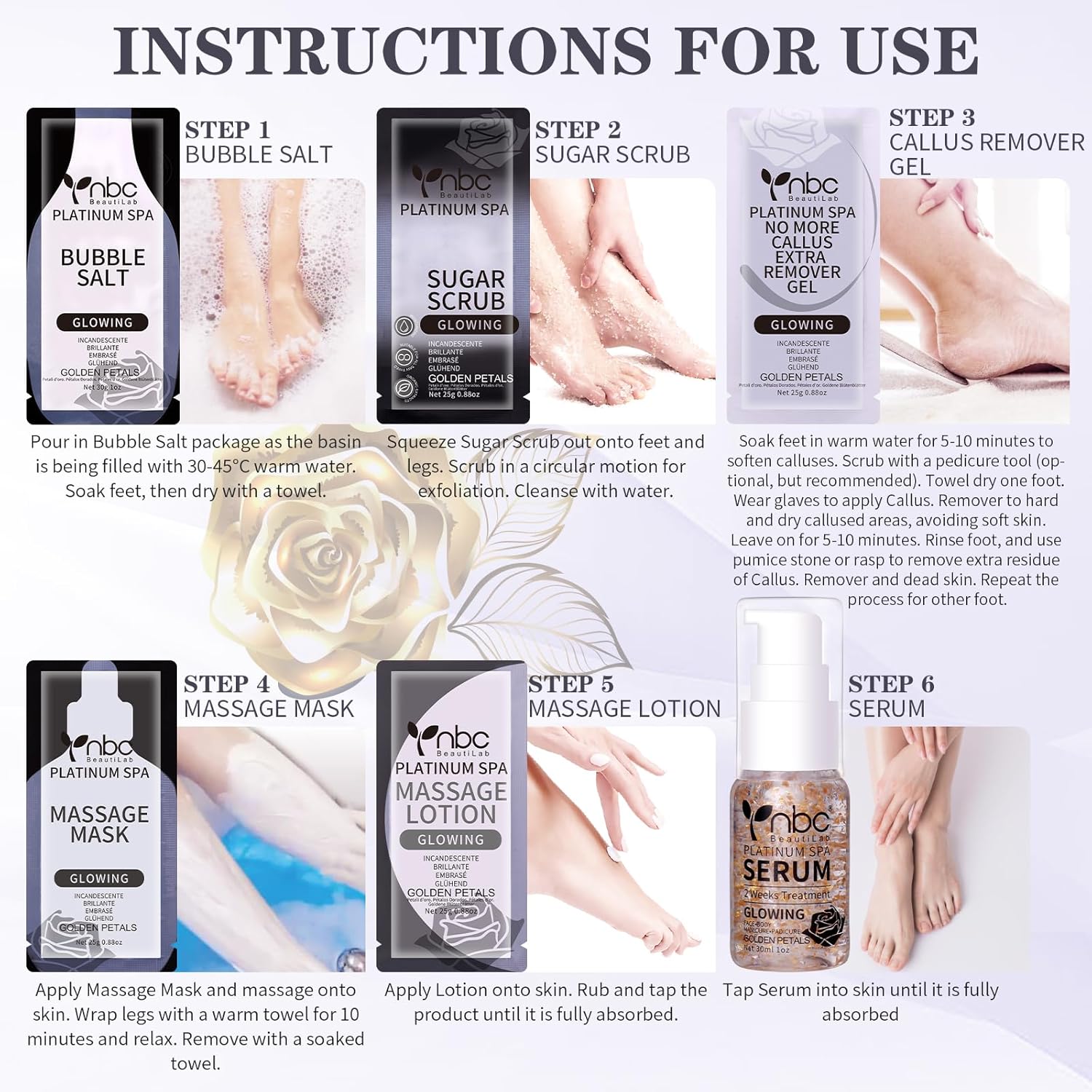 - āØ[6 Treatments] Our deluxe pedicure spa kit consists of 6 product treatments which can accelerate to restore the smooth skin of your feet. The serum in it can be used multiple times.