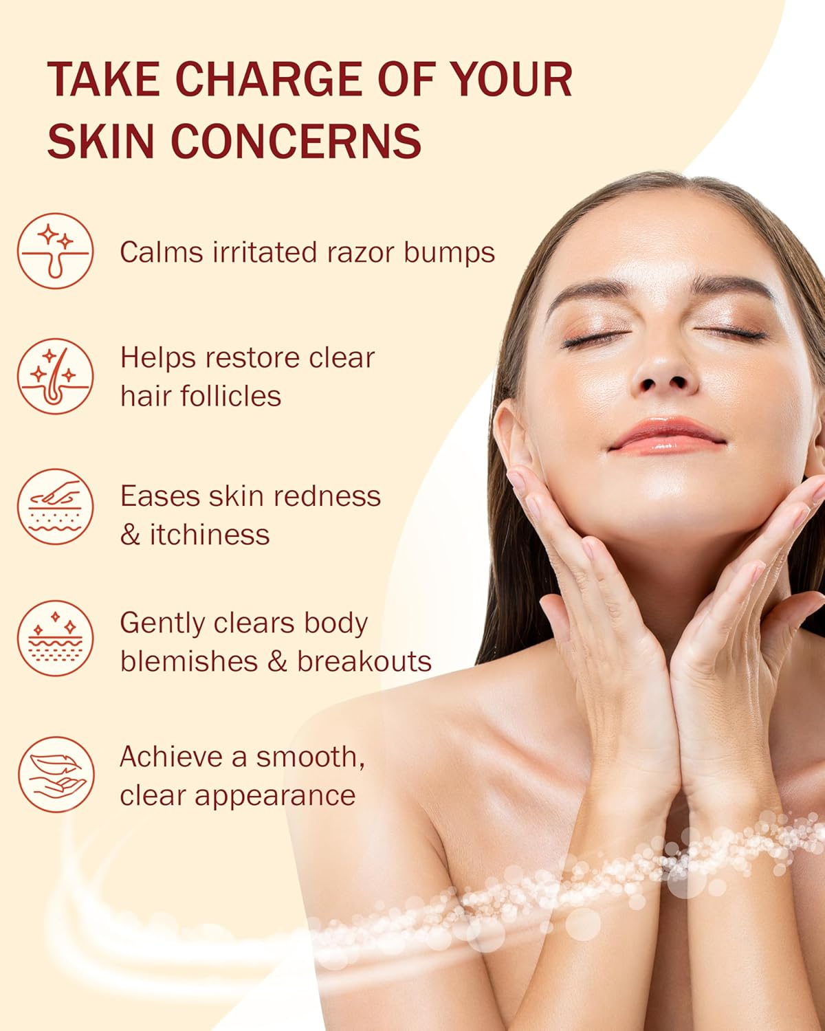 - Unlock a Clearer, Fresher Skin: Our 2% BHA Folliculitis Body Sprays penetrate deeply to cleanse your skin and unclog hair follicles, clearing away impurities and buildup that cause post-shave bumps, ingrown hairs, and body breakouts, leaving you with a clean, smooth skin every day.