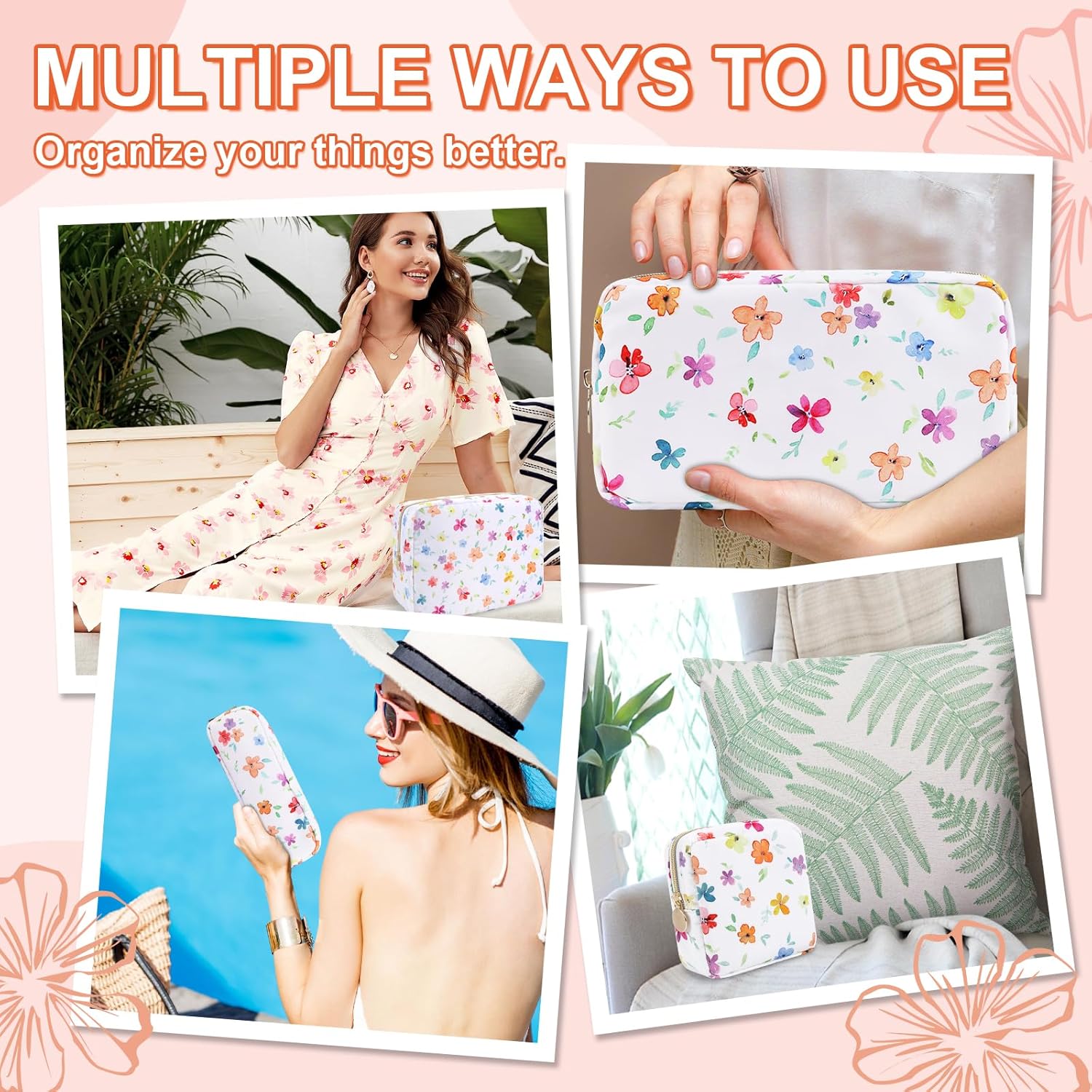Waterproof Mini Floral Makeup Bag Pouch for Purse,Nylon Flower Cosmetic Travel Bag Small Preppy Toiletry Organizers for Women Girl,Cute Zipper Pouch Coin Purse for Work(Mini Colorful-Flowers)