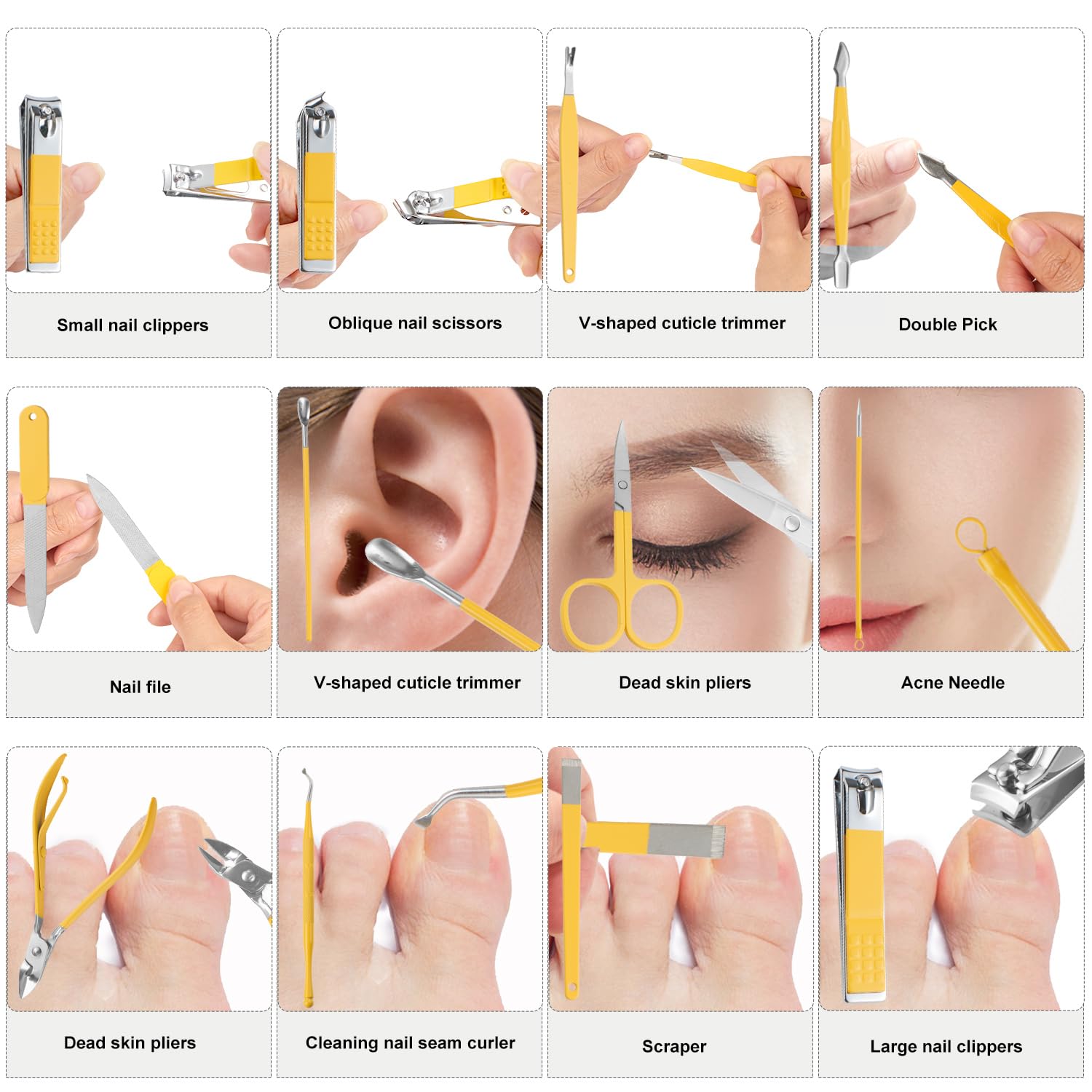 Nail Kit, Manicure Kit, Nail Care Kit for Women, Manicure Pedicure Set, Nail Clippers Toenail Clippers Kit, Professional Manicure Kit Pedicure Kit, Yellow Travel Case, Set of 12.